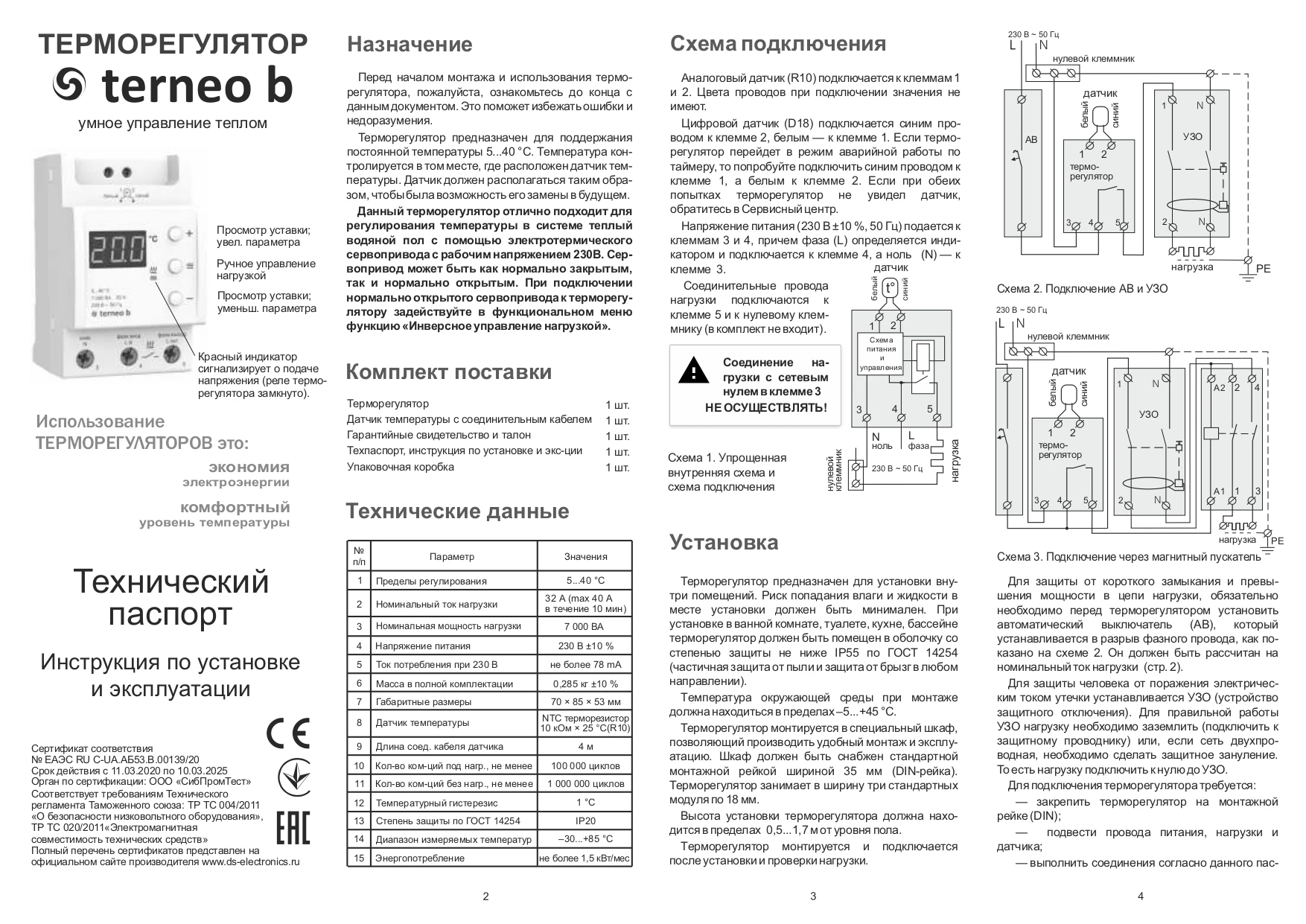 The thermoregulator is resistant to voltage changes. It is protected from overheating: if the temperature inside the case reaches 80 ° C, the device will turn off. On the screen 1 p/s will be displayed "OHT". To resume operation, the temperature shall be reduced to 60 °c. If the protection works more than 5 times: the thermoregulator will shut down until the temperature drops 60 ° C and one of the buttons is pressed. The case of the device is made of non-flammable polycarbonate.