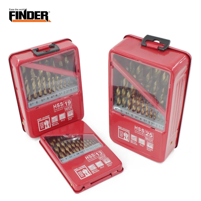 FINDER 13/19/25 шт. 1,0 ~ 13mm HSS набор сверл с титановым покрытием для металла, Деревообработка бурения аксессуары для электроинструментов в железной коробке