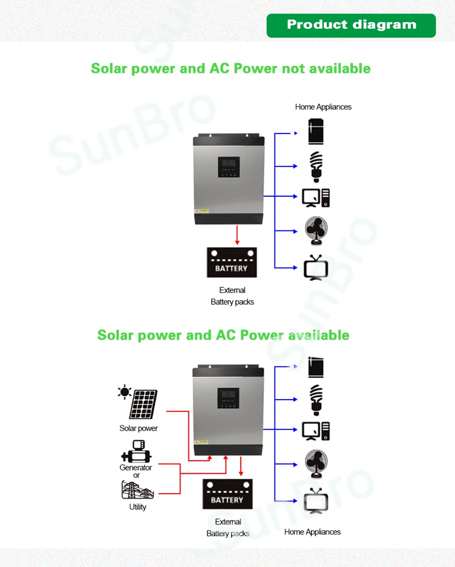 ① Настраиваемый приоритет входа переменного/солнечного тока с помощью ЖК-экрана