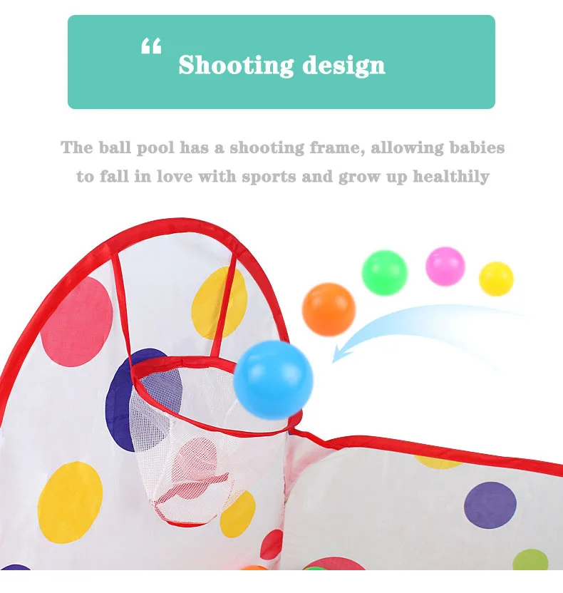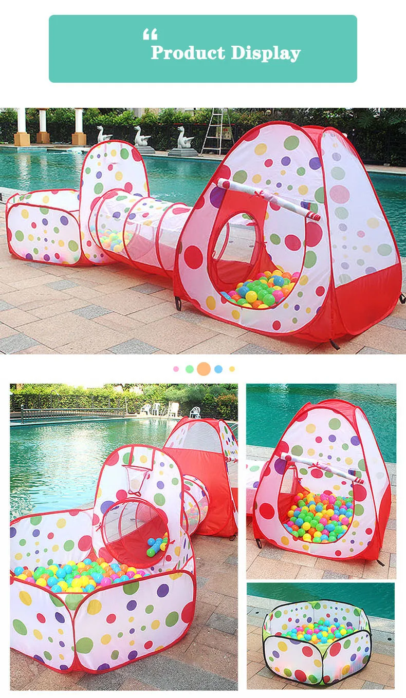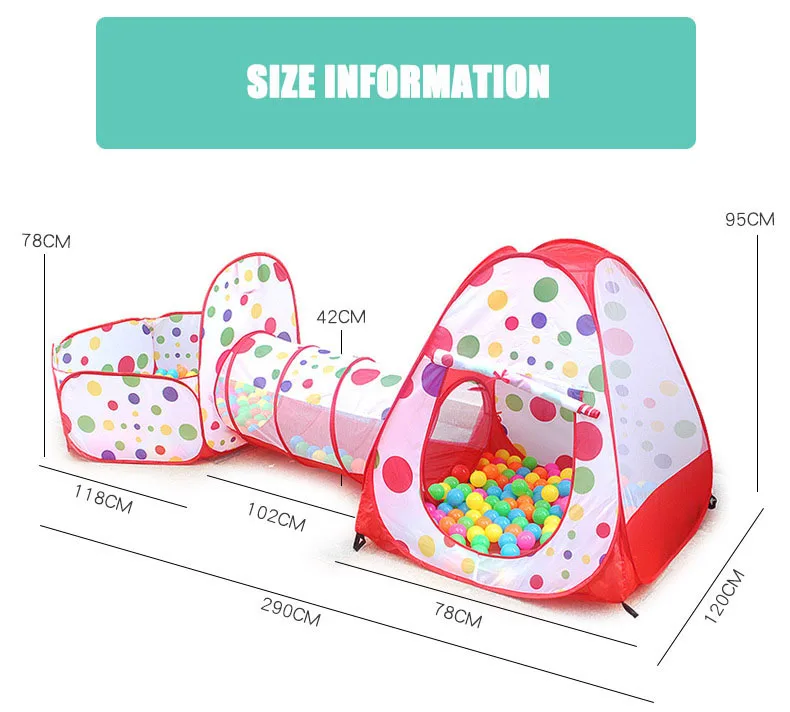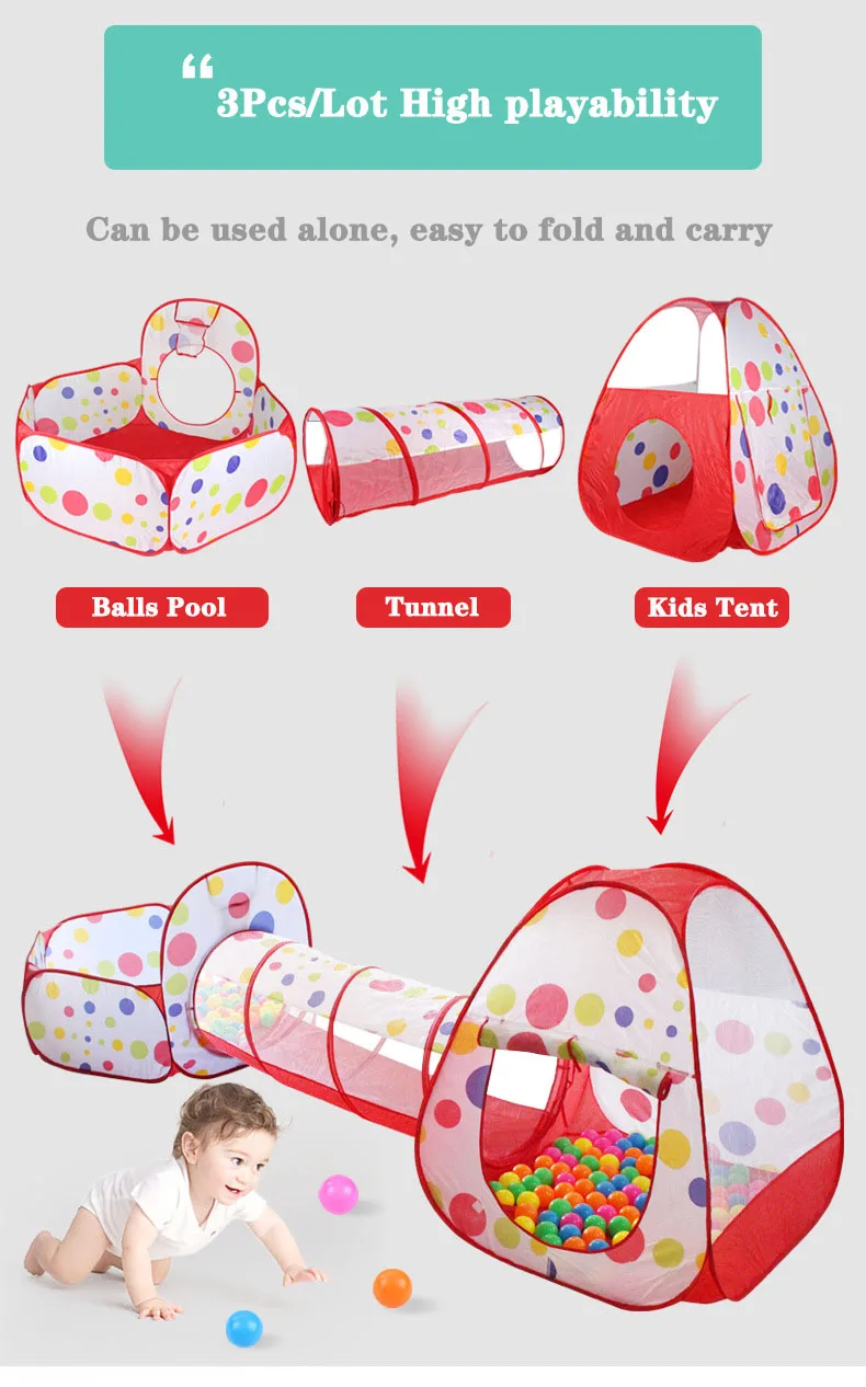 Особенность: 1. Легко носить с собой: Этот продукт имеет характеристики легкого открывания и закрывания, и легко носить с собой. 2. В сложенном виде: продукт используется метод складывания, и он быстро всплывет при открытии. После использования его можно сложить повторно. 3. Развивающие игрушки: Семейные незаменимые развивающие игрушки, она не занимает места но и дарит малышу самостоятельное творческое пространство. 4. Высокое качество: он тщательно разработан с отличной текстурой и мягкой водонепроницаемой тканью из полиэстера, легко моется и оснащен сумкой для хранения. 5. В помещении и на улице: можно сложить и положить, легко носить, можно использовать в помещении и на улице Спецификация: Материал: полиэфирная проволока из нержавеющей стали Палатка: Диагональ 90x90x90 Туннель: 108x47 см Палатка для бассейна с шариками: 120x120x75 см Посылка включает: 1*1 * бассейн + трубка + вигвам (без шариков)