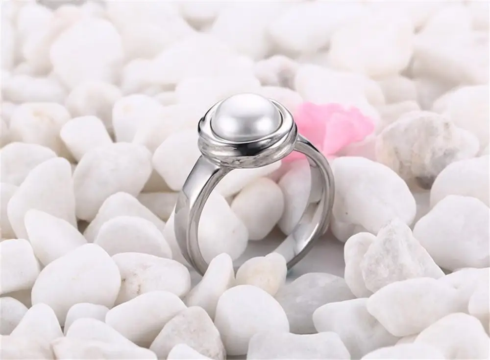 Модные выразительные жемчужные кольца для женщин из титана, нержавеющая сталь, белый золотой цвет, Свадебные обручальные ювелирные изделия, аксессуары, подарок