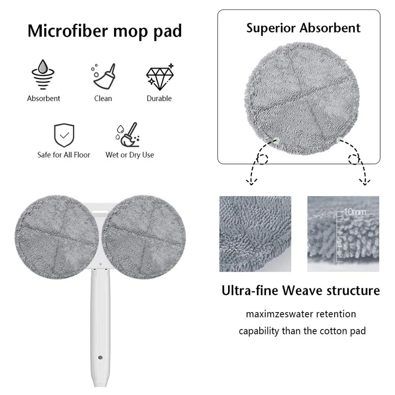 Сверхтонкая микрофибра: Наши распылительные швабры имеют высококачественную микрофибра, способность дезактивации которой еще больше улучшается, полностью поглощает мех домашних животных, волосы, мусор, пыль, масло или другие упрямые пятна, прочные и многоразовые.