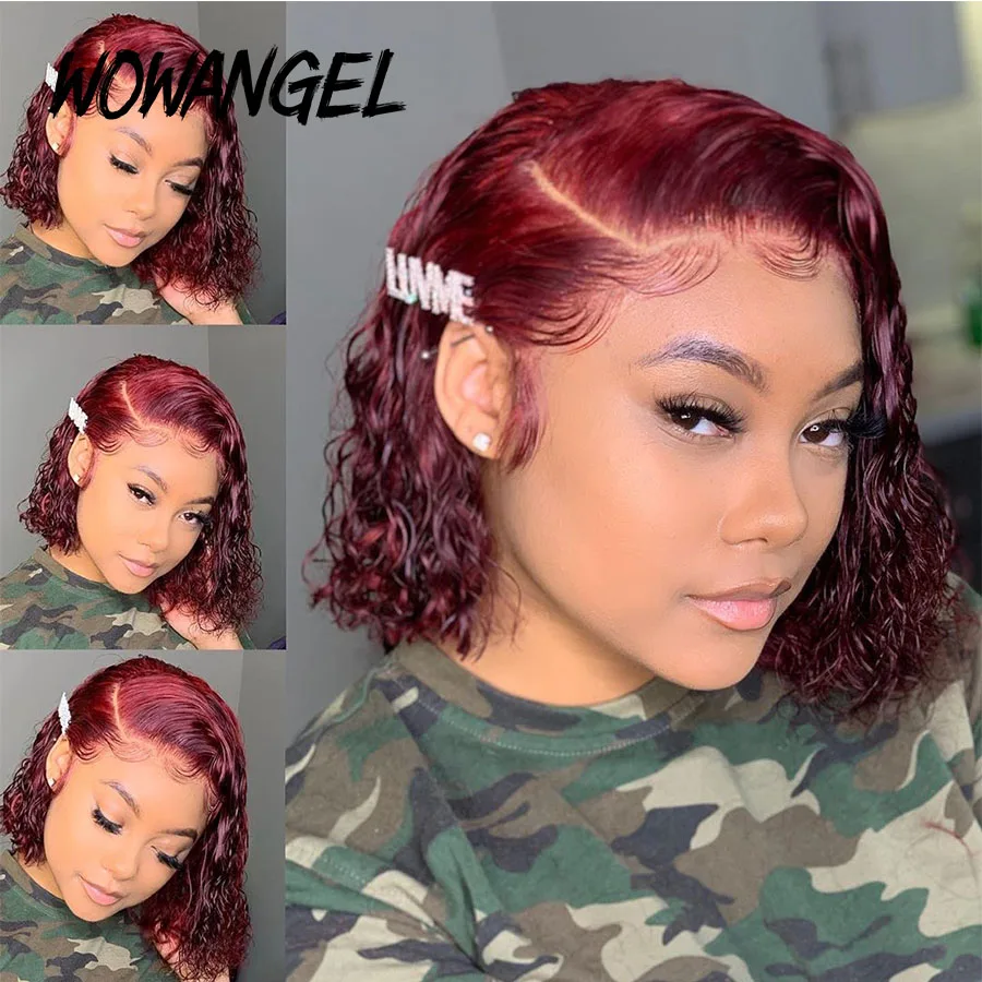 Прозрачные кружевные парики 99j бордовый цветной парик Боб парик фронта шнурка кудрявые человеческие волосы парик красный 13x 4 кружевные передние человеческие волосы парики