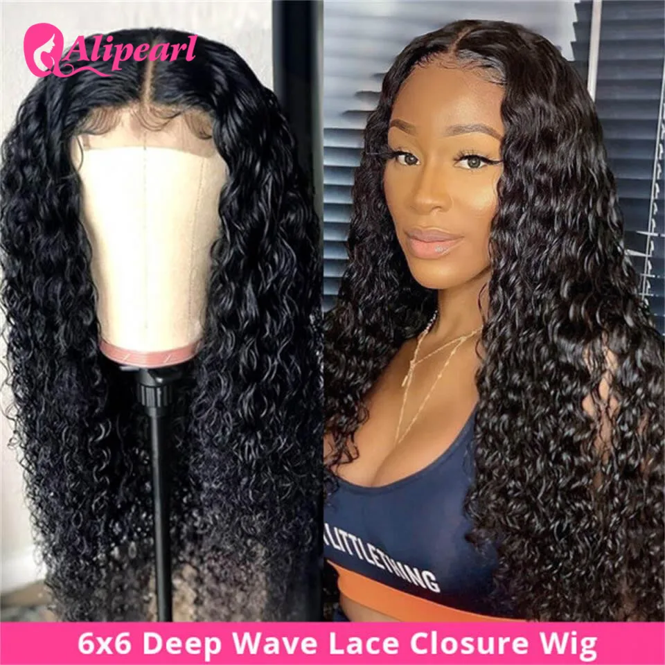 Глубокая волна 6x6 HD прозрачный парик с закрытием шнурка человеческие волосы парики бразильские парики шнуркаДля черных женщинПредварительно выщипанныйПлотность 180 250Парики из перламутровых волос
