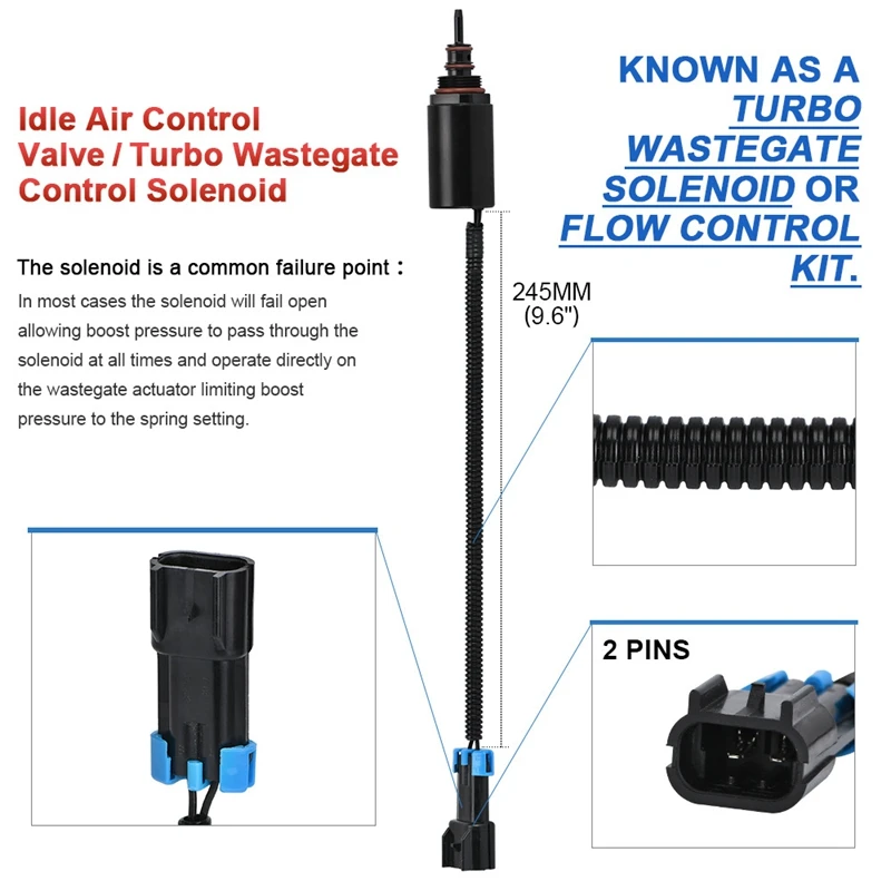 Турбо расточгатный контроль соленоида является важным компонентом для турбо двигателя, который защищает двигатель и турбину. Он может высвобождать воздух высокого давления, генерируемый во время инерционной работы турбины, чтобы предотвратить повреждение лопастей турбины или дроссельной заслонки ударом