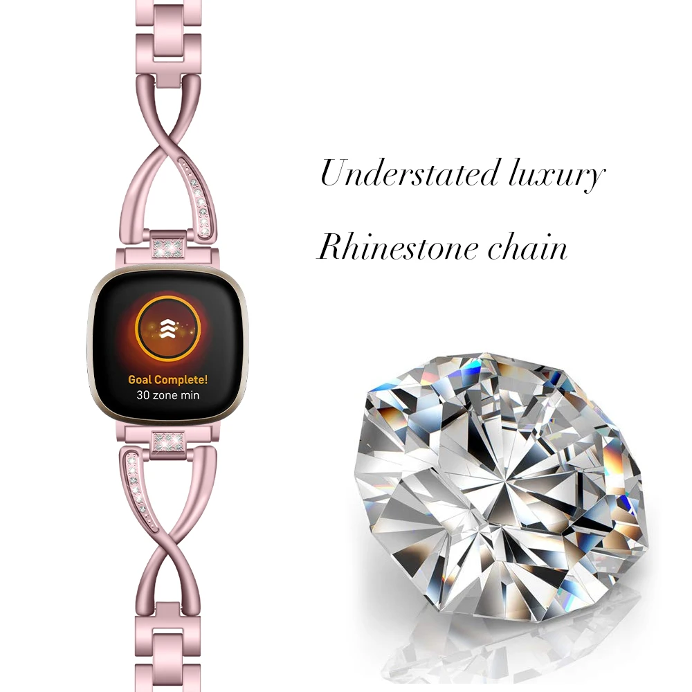 Браслет из нержавеющей стали X Shape Diamond для fitbit sense, ремешок для часов, женские часы из цинкового сплава, ремешок для Fitbit versa 3, Смарт-часы