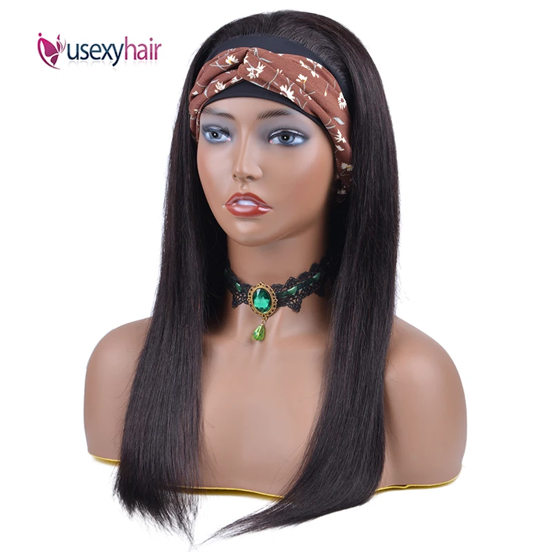 Прямые парики для волос с Человеческие волосы Remy Предварительно Прикрепленный шарф машина сделал парики Brizilian манекен для шарфа парика ледяной шелк повязка половина парик