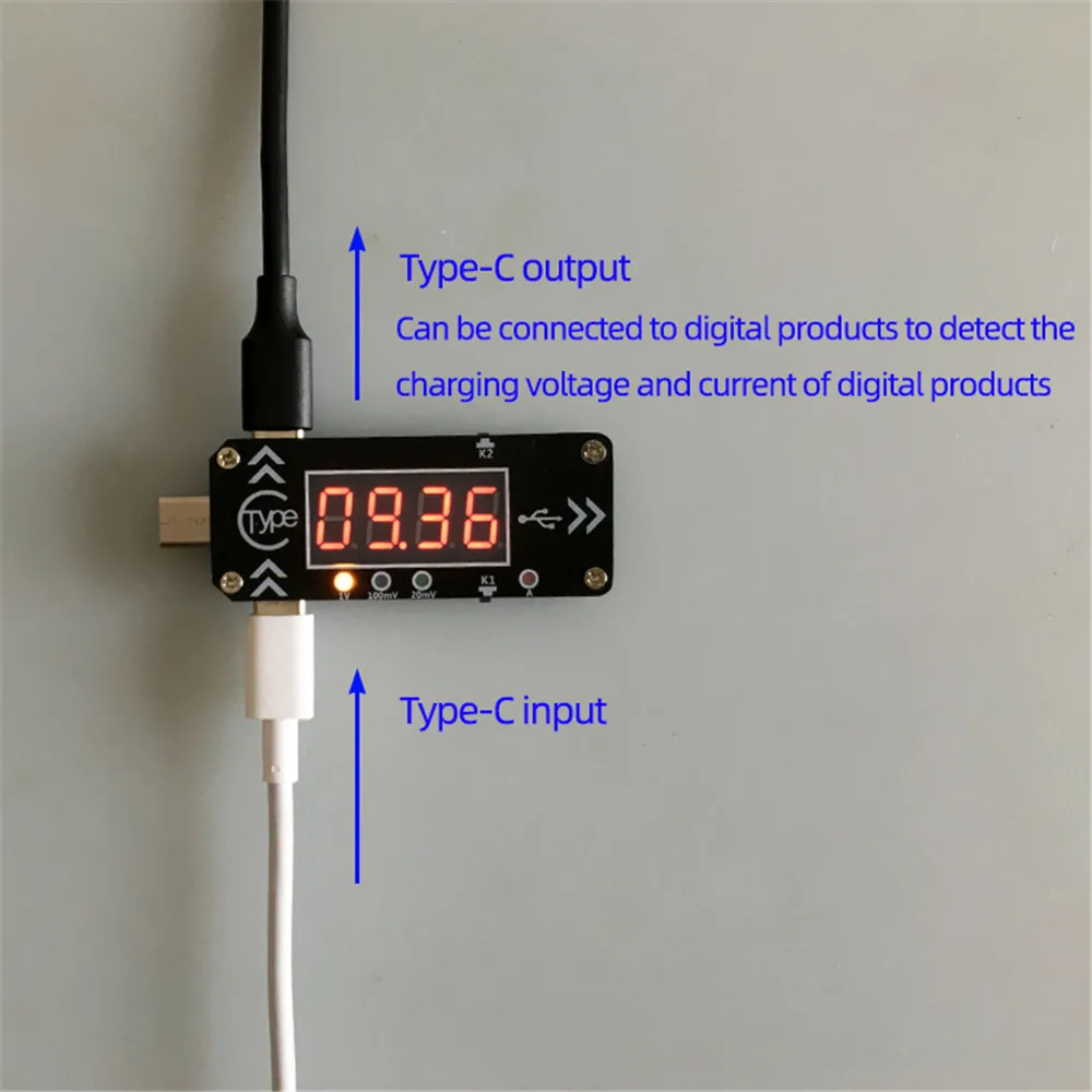 Зарядное устройство USB с триггером Вольтметр Амперметр 5 В/9 В/12 В/15 В/20 в/PPS PD2.0 PD3.0 Type-C USB устройство для зарядного устройства PDКлючевые и функциональные детали: Отображение типа протокола PD на каждом источнике питания'----': Протокол PD не поддерживаетсяPd2.0: поддержка протокола PD 2,0Pd3.0: поддержка протокола PD 3,0 Как переключить содержимое дисплея: В рабочем интерфейсе нажмите клавишу K1, чтобы переключить напряжение дисплея/ток/дисплей в свою очередь; Удерживайте клавишу K1 в течение 5 секунд, чтобы выключить дисплей трубки nixie и светильник индикатора, И любой ключ проснется. Как регулировать Диапазон напряжения: 1. В рабочем интерфейсе нажмите клавишу K2, чтобы войти в интерфейс регулирования напряжения, и напряжение будет мигать после того, как на трубке nixie будет отображаться ток;2. В это время нажмите клавишу K2 / K1 для изменения (K2 для сдвига вверх и K1 для понижения), при переключении передач «P7-1» (P7: поддерживает в общей сложности 7 передач напряжения, - 1: указывает серийный номер шестерни напряжения тока), А затем отображает значение напряжения тока; Если шестерня напряжения тока поддерживает регулирование напряжения PPS, индикатор ступенчатой передачи (20 мВ 100 мВ 1 В) будет полностью включен;3. В 5S нет ключа или нажмите кнопку K1 2s для автоматического возврата к операционному интерфейсу; Примечание: последняя передача «L» «P7-l» срабатывает в свою очередь. Когда L передача выбрана и возвращается к операционному интерфейсу, все поддерживаемые шестерни (5 В/9 В/12 В/15 В/20 в/PPS режим) срабатывает в свою очередь. В этом режиме светильник с индикатором напряжения на шаге рабочего интерфейса будет отображаться в режиме ходовой лампы. Эта функция используется для серийного тестирования производителем зарядной головки.Примечание: зарядная головка PD 2,0 обычно поддерживает 4-5 режимов регулирования напряжения и отображает формат «P4-1» или «P5-1». Зарядная головка PD 3,0 обычно поддерживает 6-7 режимов регулирования напряжения и отображает формат «P6-1» или «P7-1»Как настроить напряжение в PPS пошаговом режиме6. Во-первых, убедитесь, что индикатор ступенчатой передачи PPS (20 мВ 100 мВ 1 В) полностью включен/включен в один из них;7. Удерживайте клавишу K2, чтобы ввести регулирование напряжения PPS, значение напряжения трубки nixie, сначала активируйте 1 в шаг регулирования напряжения шестерни;8. Нажмите и удерживайте K2 снова, чтобы изменить ступенчатую передачу;9. После выбора соответствующей ступенчатой передачи измените напряжение, ненадолго нажав кнопку K1 / K2; Когда индикатор ступенчатой передачи полностью включен, нажмите клавишу K1 / K2 ненадолго, чтобы выйти из режима регулирования напряжения PPS и выбрать другие шестерни напряжения;10,5 секунд без каких-либо клавиша или нажмите и удерживайте кнопку K1 ключ 2s, чтобы вернуться к эксплуатации интерфейс автоматически; Этот продукт имеет функцию отключения памяти. Запомните шестерню напряжения и режим PD перед отключением питания в следующий раз. Применение: 1. Этот продукт может вызвать напряжение различных передач в зарядной головке PD для питания внешнего оборудования, такого как маршрутизатор, оптический Кот, приставка или ноутбук (адаптер должен быть заменен, когда мощность зарядного устройства PD соответствует требованиям)2. Он может быть использован в качестве Партии тестирования и старения PD зарядной головки производит