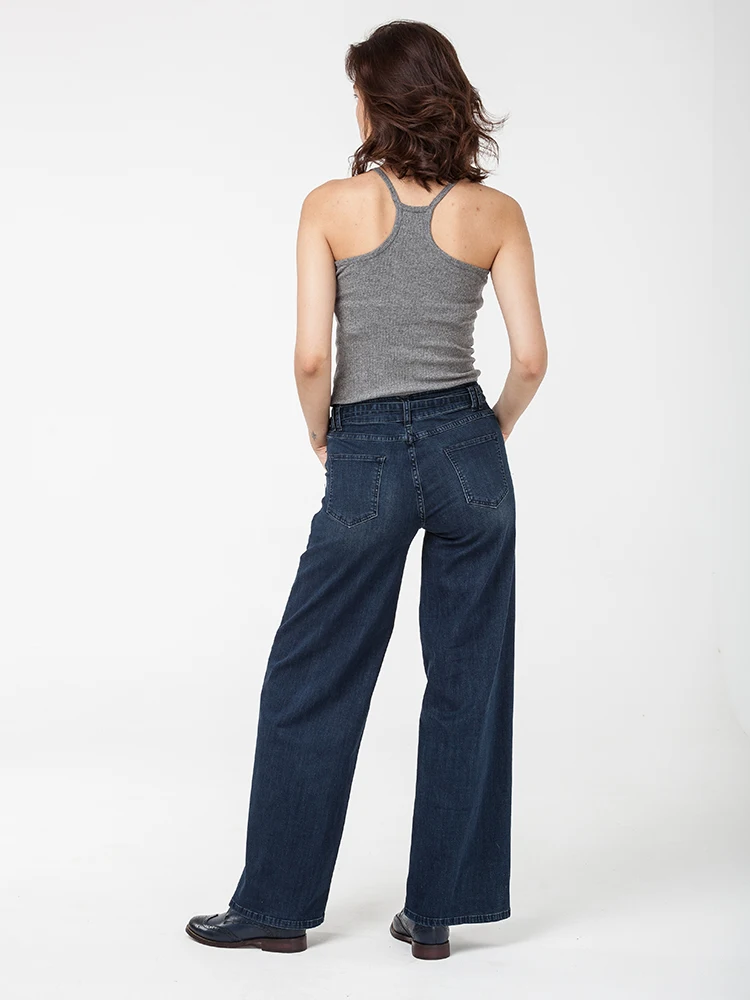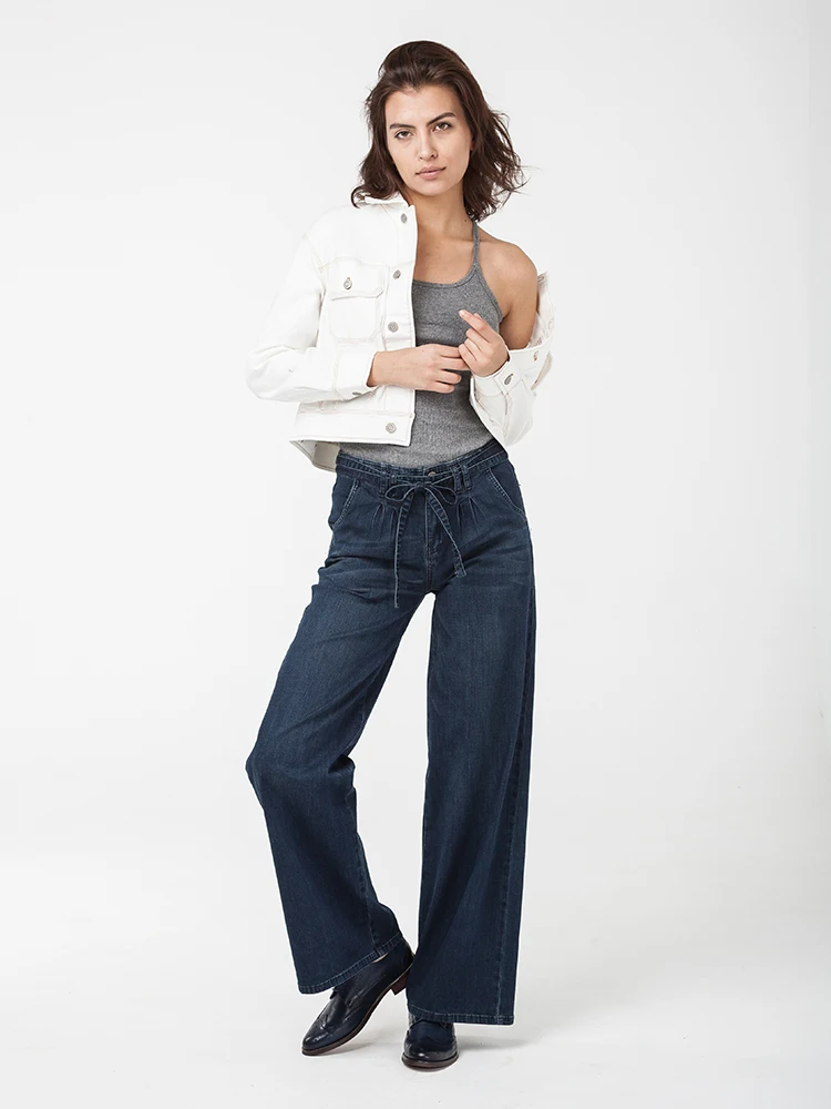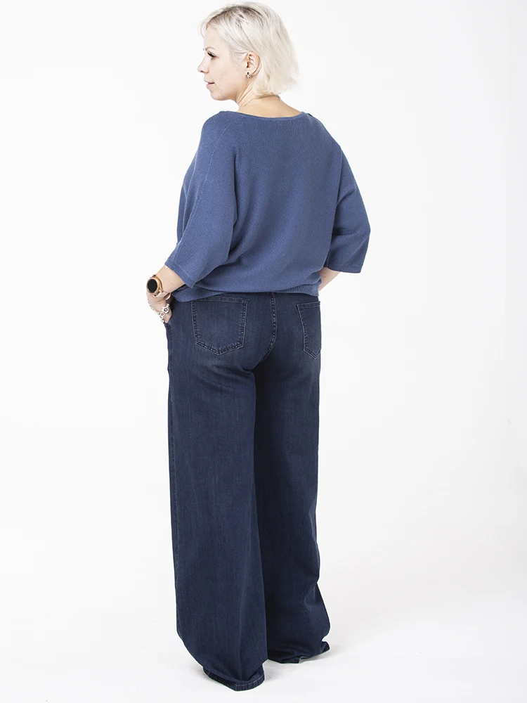 Яркая и очень модная модель, красиво подчеркивающая талию и бедра за счет высокой посадки и широкой штанины, скрывая все недочеты фигуры. Очень необычное и оригинальное решение с поясом, длины которого хватает на 2 оборота, который можно завязывать как спереди так и сзади. Двойные шлевки, удобные карманы и много других приятных мелочей, которые вы обязательно оцените. И этот темно-синий благородный цвет, который всегда актуален. Это та модель, которую хочется носить! Джинсы с эластаном, комфортные в бедрах с прямой широкой штаниной. Посадка чуть выше средней, 26см в 28 р-ре. Парматры изделий: размер - талия/бедра. 26-69/102, 27-71/105, 28-74/107, 29-77/110, 30-79/112, 32-84/122, 34-89/122, 36-94/127, 38-99/132, 40-104/137. Для проверки размера измеряйте себя по талии. Длина по внутреннему шву 81см во всех размерах.