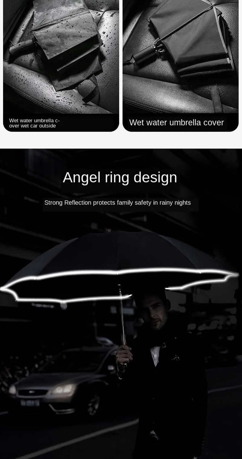 Непродуваемый складной зонтик для путешествий с отражающей полосой 10 ребер с автоматическим открыванием и закрытием портативный зонт для женщин и мужчин