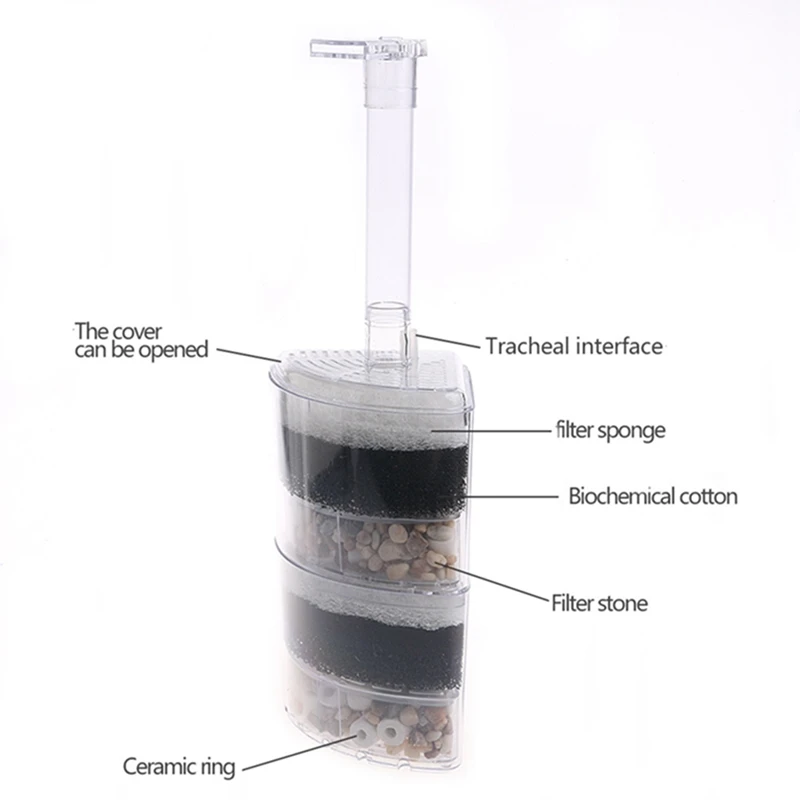 С двухслойными губчатые фильтры, этот Угловой фильтр сочетает в себе физическую и биохимическую фильтрацию для вашей рыбы и увеличивает растворимость кислорода. Верхний слой белой фильтровальной прокладки служит механической фильтрации, а черные био-губки и керамические кольца работают как биохимическая фильтрация и поддержка колонизации полезных бактерий.