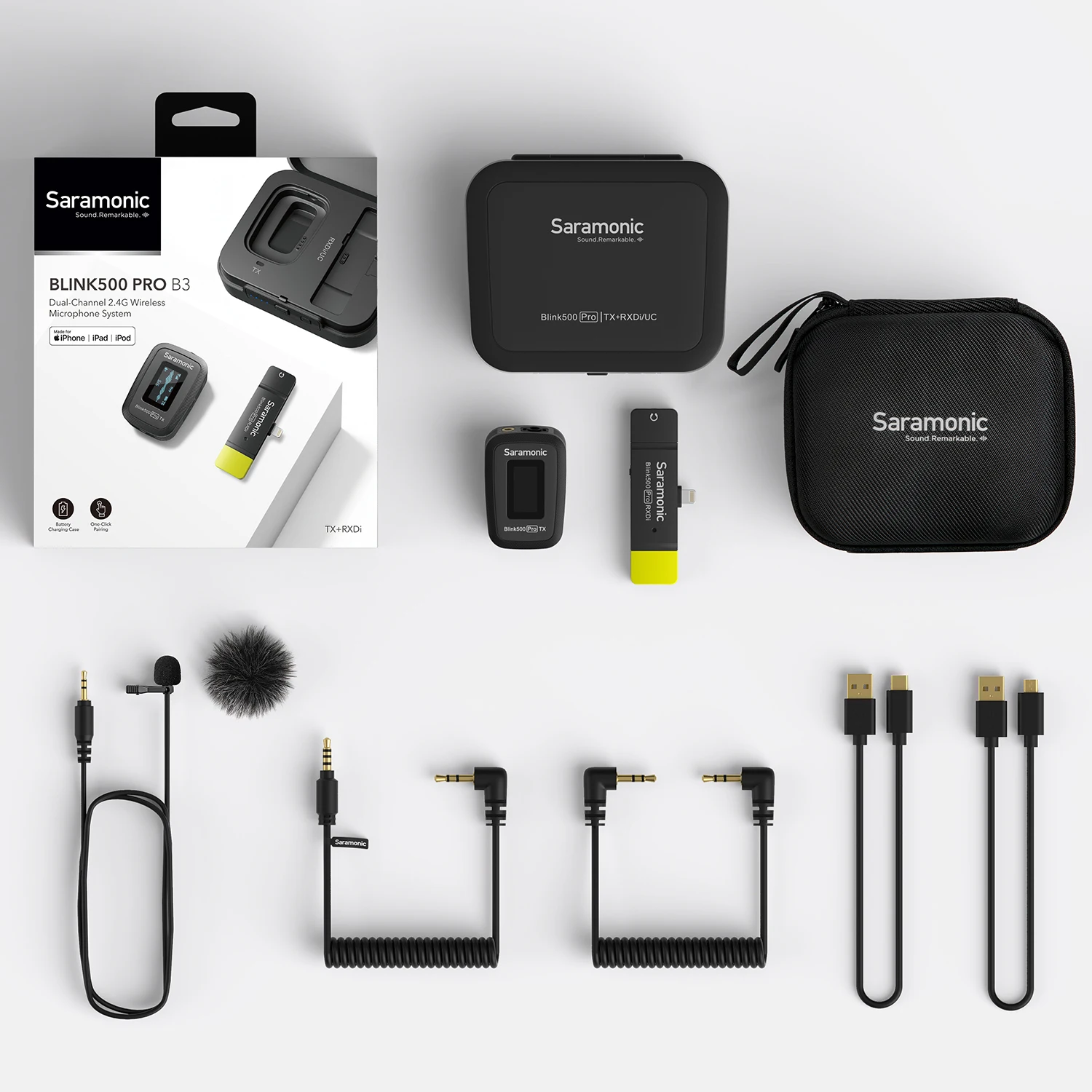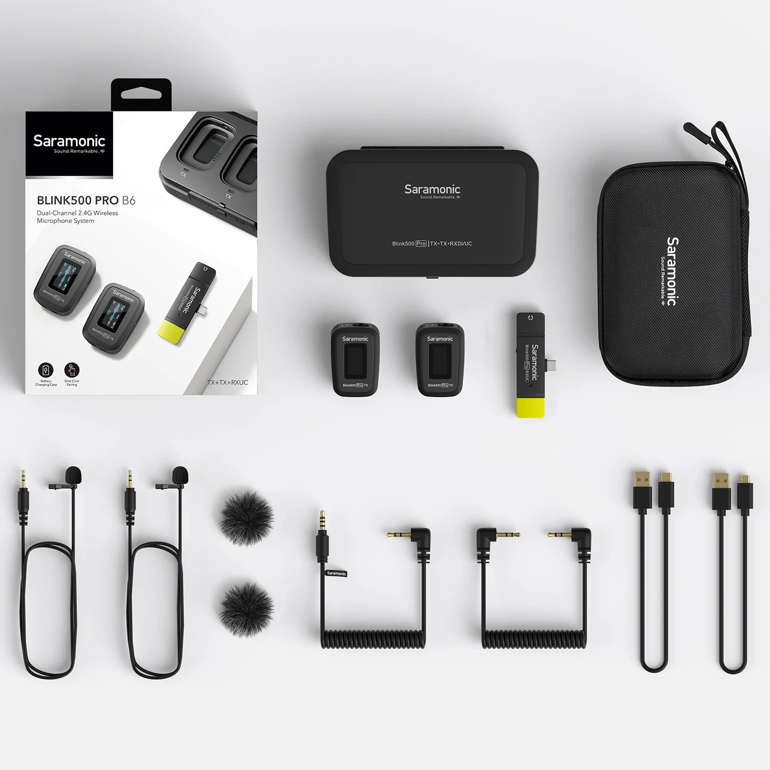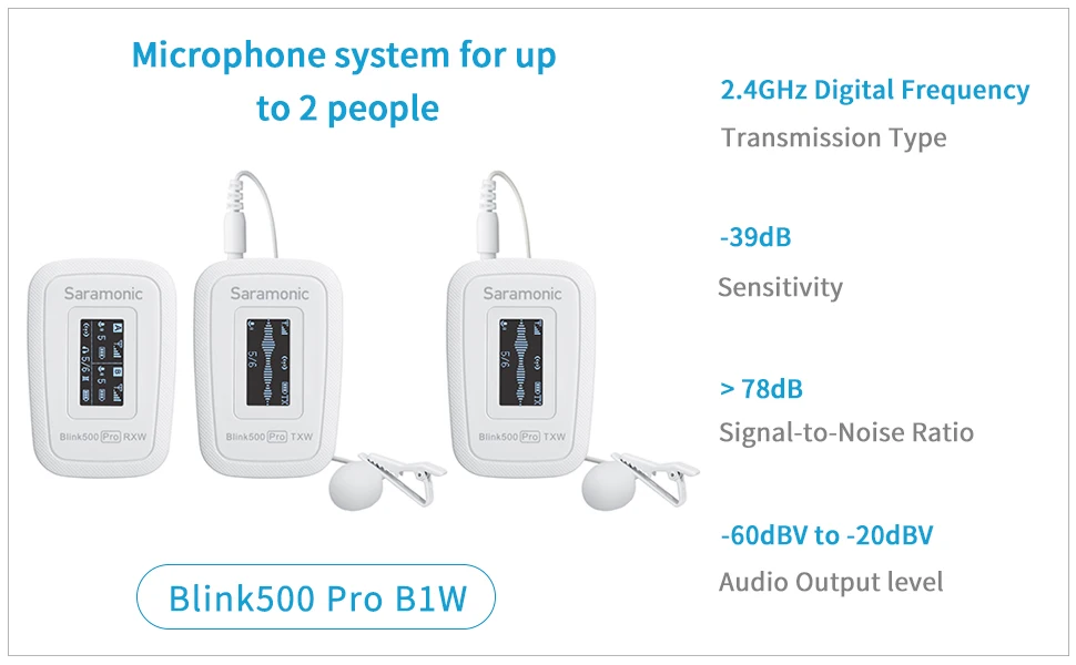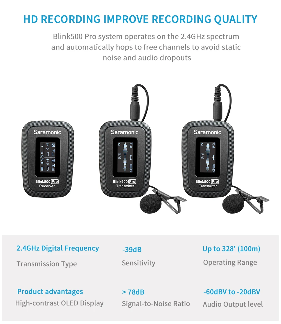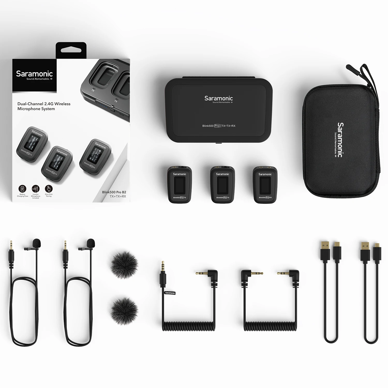 Система Saramonic Blink500 Pro Невероятно легкая, ultracompact и простая в использовании Беспроводная микрофонная система для 2 человек. Микрофон обеспечивает исключительное качество передачи звука для DSLR, беззеркальных и видеокамер, смартфонов, планшетов, компьютеров и многого другого.