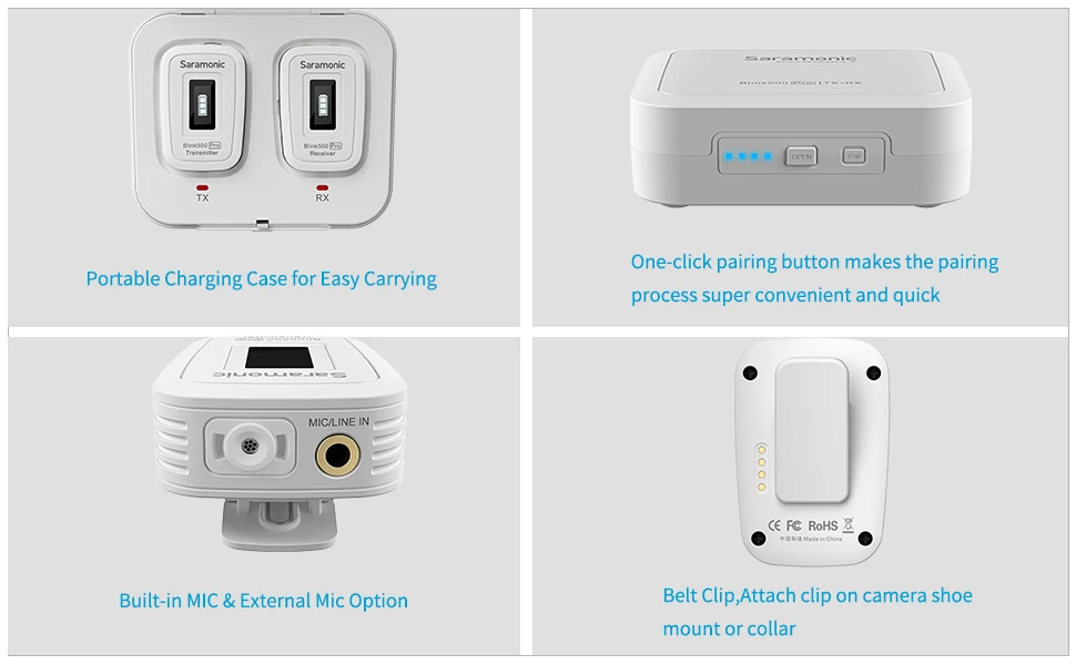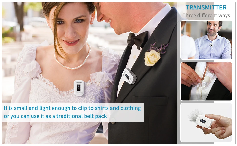 Прикрепляемый передатчик Blink500Pro TX имеет встроенный всенаправленный микрофон с большим звуком и достаточно маленький светильник, чтобы прикрепить к рубашкам и одежде, или вы можете использовать его в качестве традиционного передатчика поясной упаковки с включенным SR-M1 профессиональным микрофоном lavalier. К вашим услугам vivid oled-дисплеем и имеет 3,5 мм вход для микрофонов и линии входов высокого уровня.