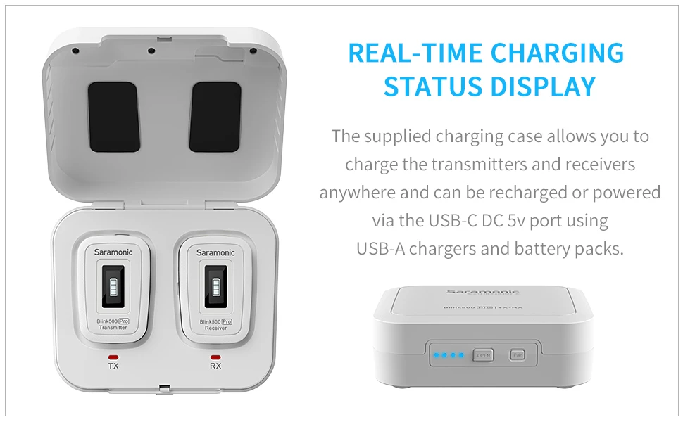 Передатчики и приемники обеспечивают замечательное время работы 8 часов на одной зарядке и обеспечивают быструю зарядку. Поставляемый зарядный чехол позволяет заряжать передатчики и приемники быстрой зарядки. Поставляемый зарядный чехол позволяет заряжать аккумуляторы передатчиков и приемников.