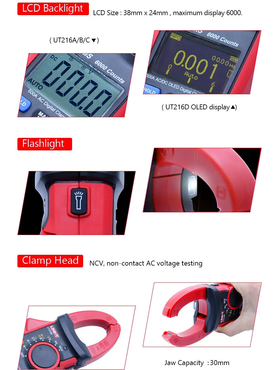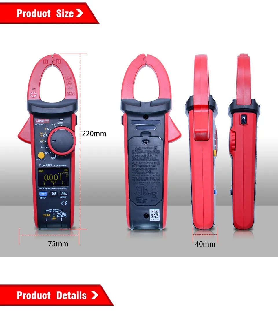 Цифровой зажим UT216 Series true RMS-это практичный электротехнический измерительный прибор нового поколения, который обладает высокой надежностью, высокой безопасностью, автоматическим диапазоном и портативным типом, обладает полной защитой от перегрузки и уникальным внешним видом, более превосходным по производительности и является идеальным инструментом для обнаружения, Техническое обслуживание и ремонт различных университетов и колледжей, плавки, связи, производства, нефти, национальной обороны, электрического, силового и цепного оборудования.