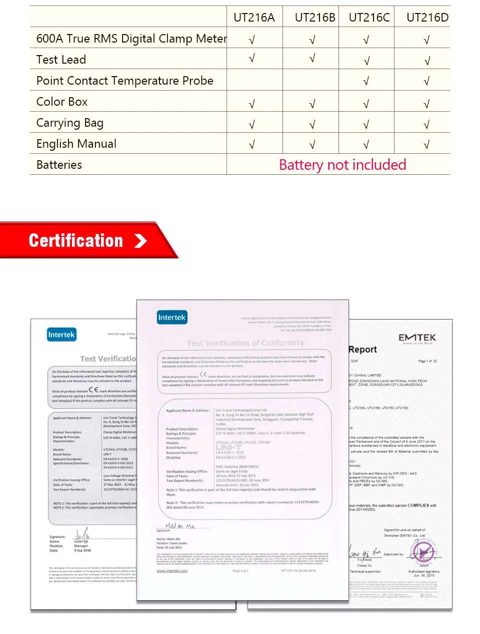 Модель | UT216A | UT216B | UT216C | UT216D | |