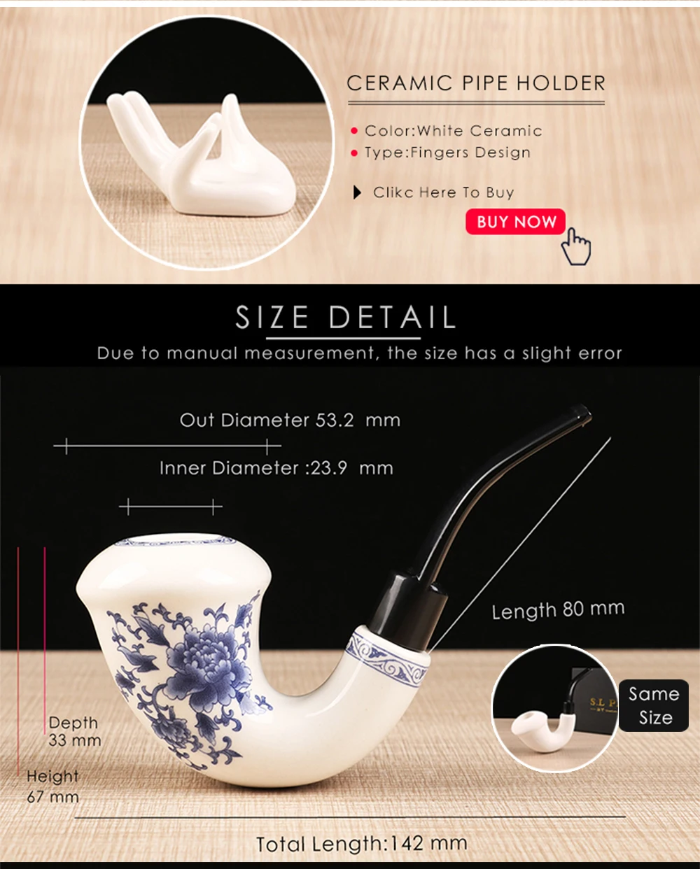 [Материал] ● Корпус трубы: 100% Восточная синяя и белая керамика, декоративный штраф за подделку. ● Материал мундштука: высококачественный акрил пищевого класса материал s. ● Ходер труб: 100% белая керамика ● Цвет: как показано на изображении. ● Адаптивный фильтр: подходит для фильтров 9 мм/3 мм.