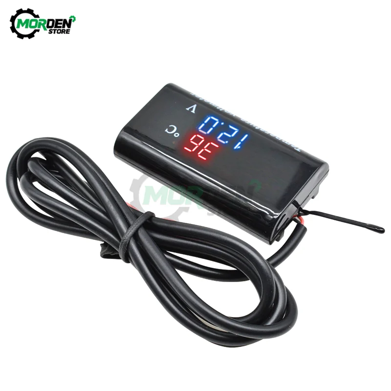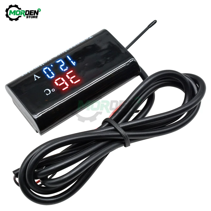 DC 12 В 0 28 дюйма/0 56 дюйма светодиодный цифровой датчик температуры вольтметр