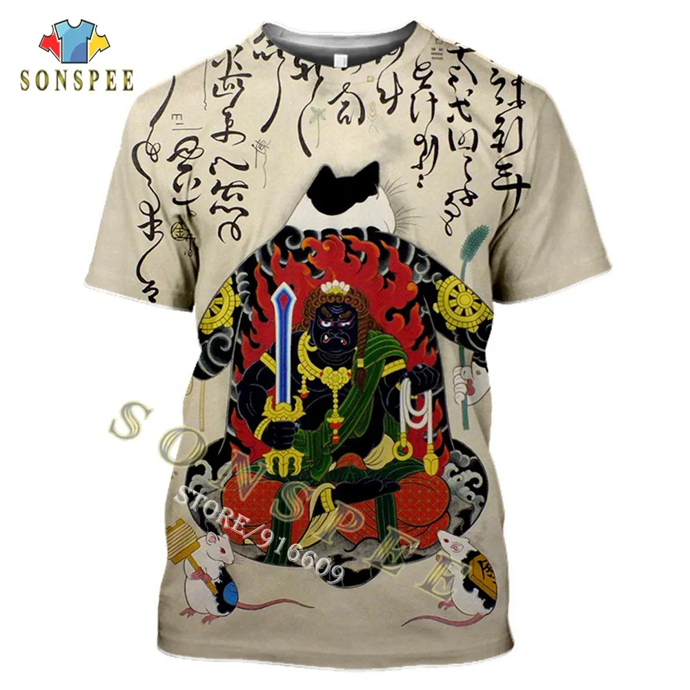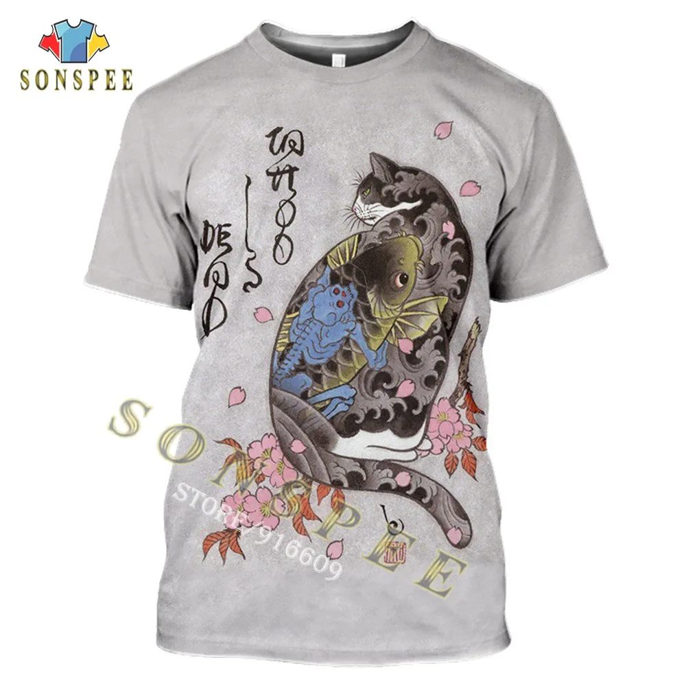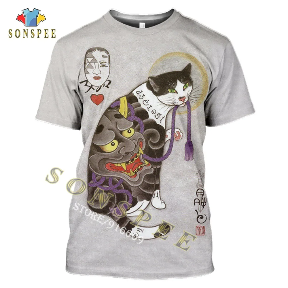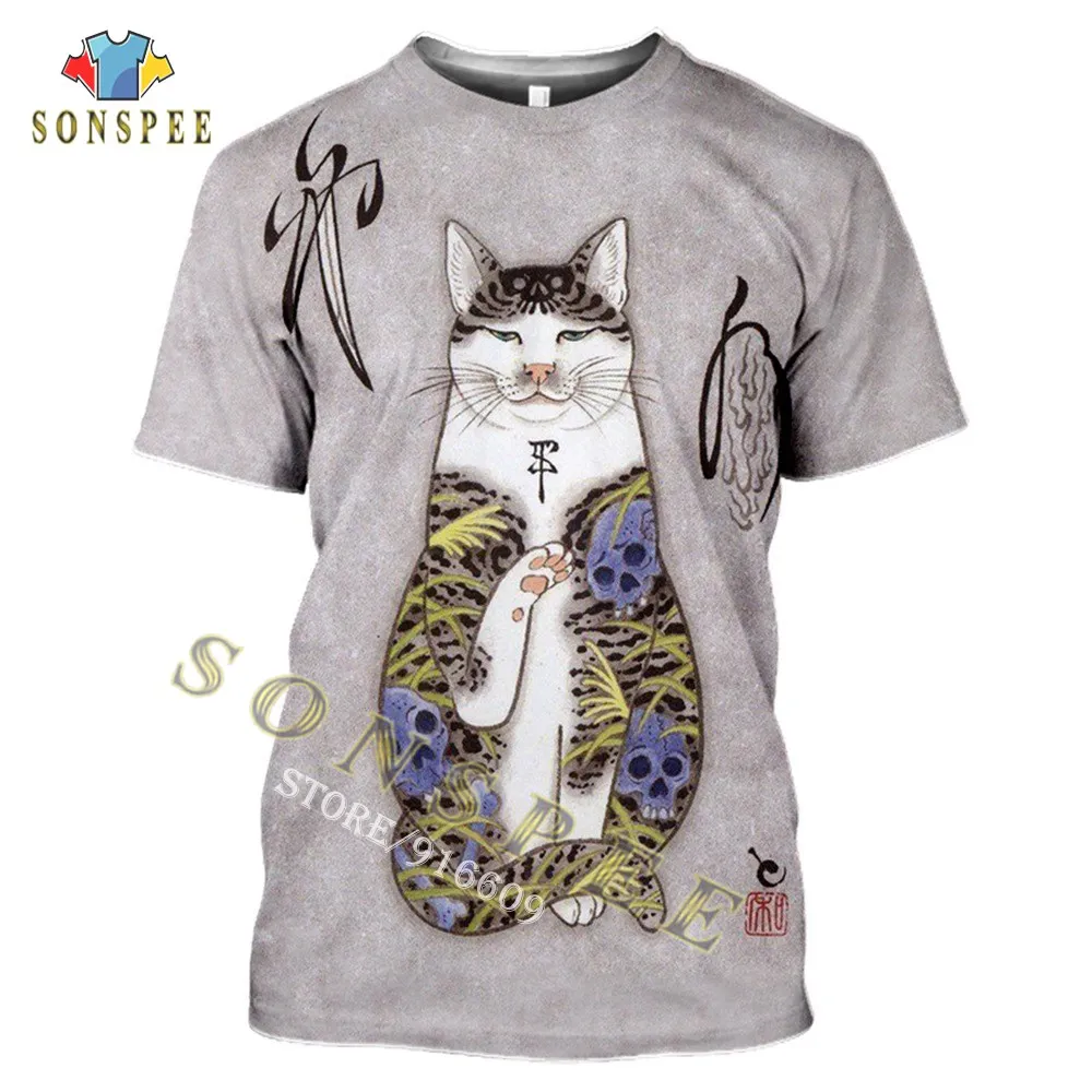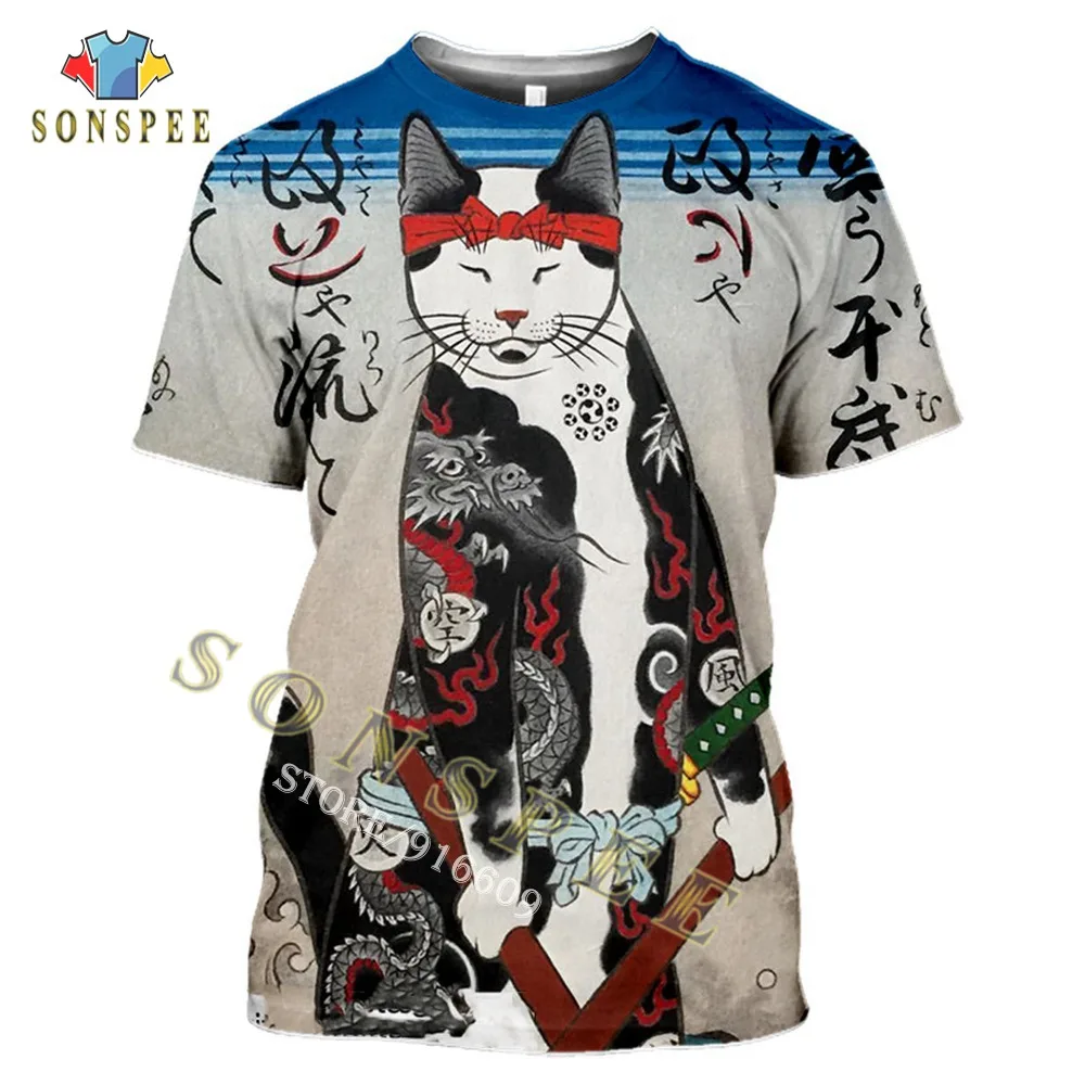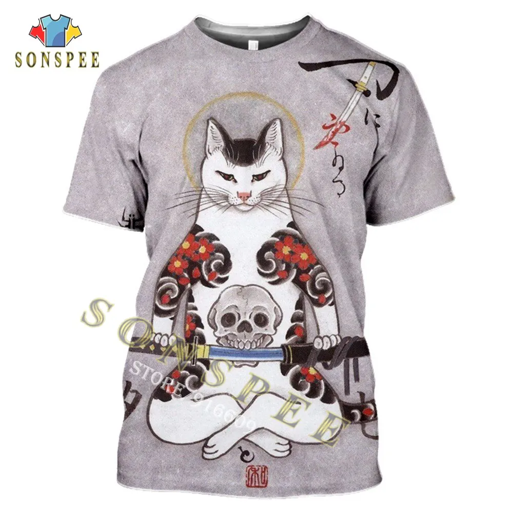 SONSPEE 3D принт японский самурайский Кот тату Мужская футболка классная Классическая футболка женская летняя повседневная футболка Топы для фитнеса с круглым вырезом