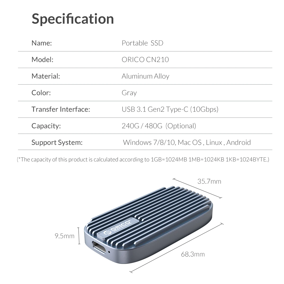 Портативный мини-накопитель ORICO CN210