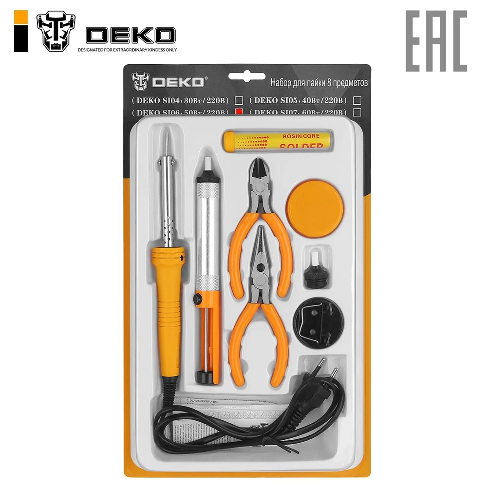 Набор для пайки DEKO SI06, 50Вт/220 В, 8 предметов включает в себя: