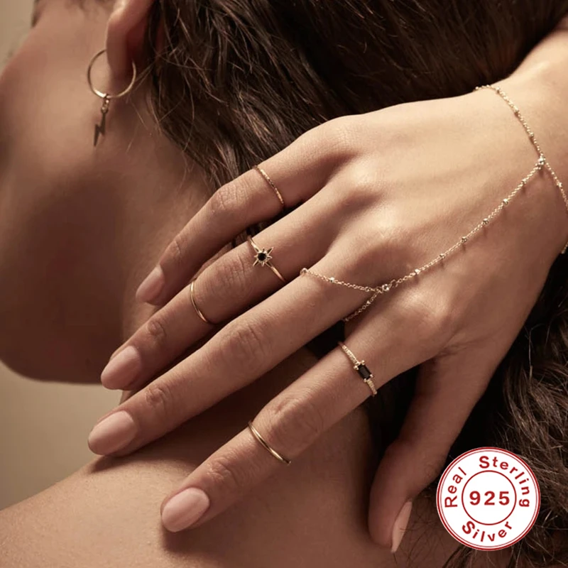 Кольцо с квадратным черным бриллиантом CANNER, 100% Стерлинговое Серебро 925 пробы, золотые кольца для женщин, Роскошные ювелирные украшения, свадебные кольца Bijoux