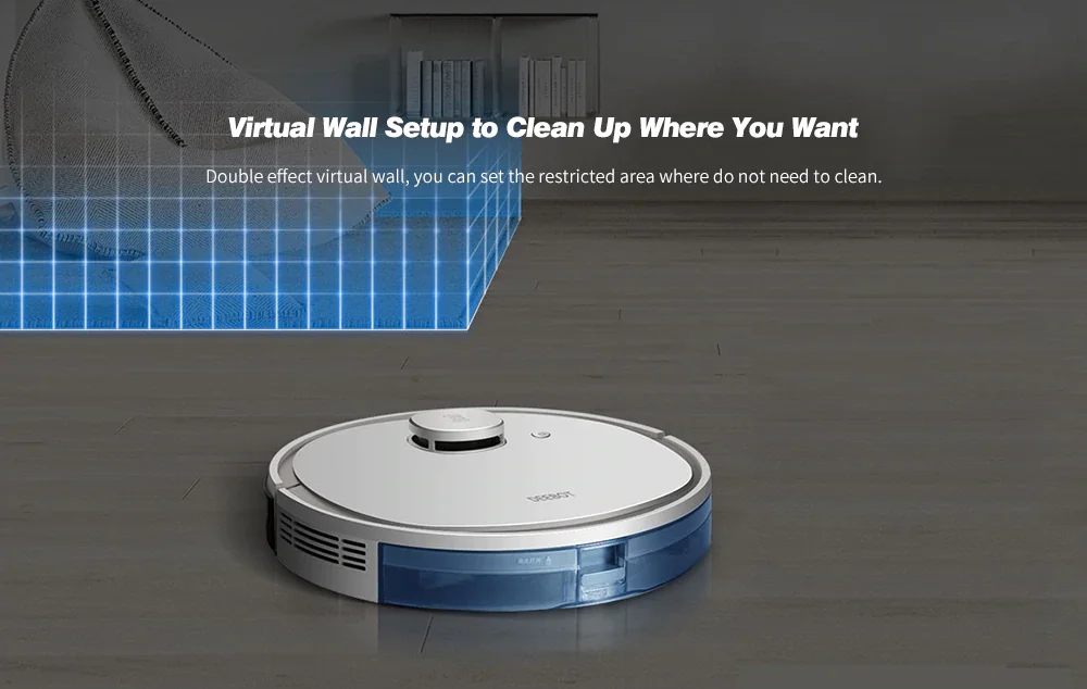 ● Double effect virtual wall, you can set sweeping virtual wall and mopping virtual wall, according to the cleaning state, respectively avoid the restricted area