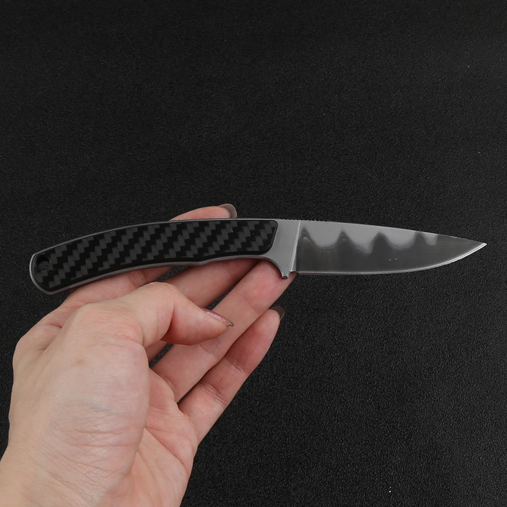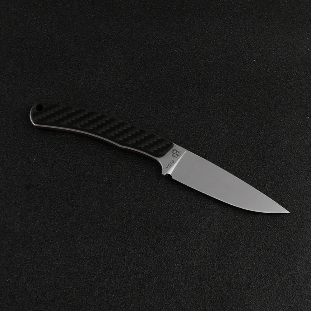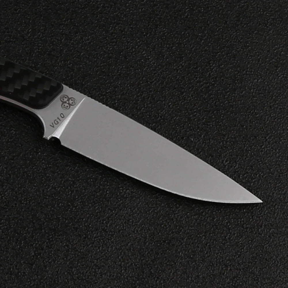 Технические характеристики Общая длина: 6,771 '' (172 мм) Длина клинка: 2,952 '' (75 мм) Толщина клинка: 0,137 ''(3,5 мм) Материал ручки: углеродное волокно Вес ножа: 2,1 унции. (58,7 г) Оболочка: Черная оболочка KYDEX Версия VG10 Материал клинка: VG10 Твердость: 58-59 HRC Обработка поверхности: каменная промывка Версия из нержавеющей стали с зажимом Материал клинка: нержавеющая сталь clip steel(420 clip T10) Твердость: 57-58 HRC Обработка поверхности: шлифовка поверх кислоты