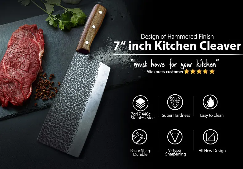 7 дюймов император серии тесак нож razor sharp с невероятно твердой стали и используется для точного измельчения.