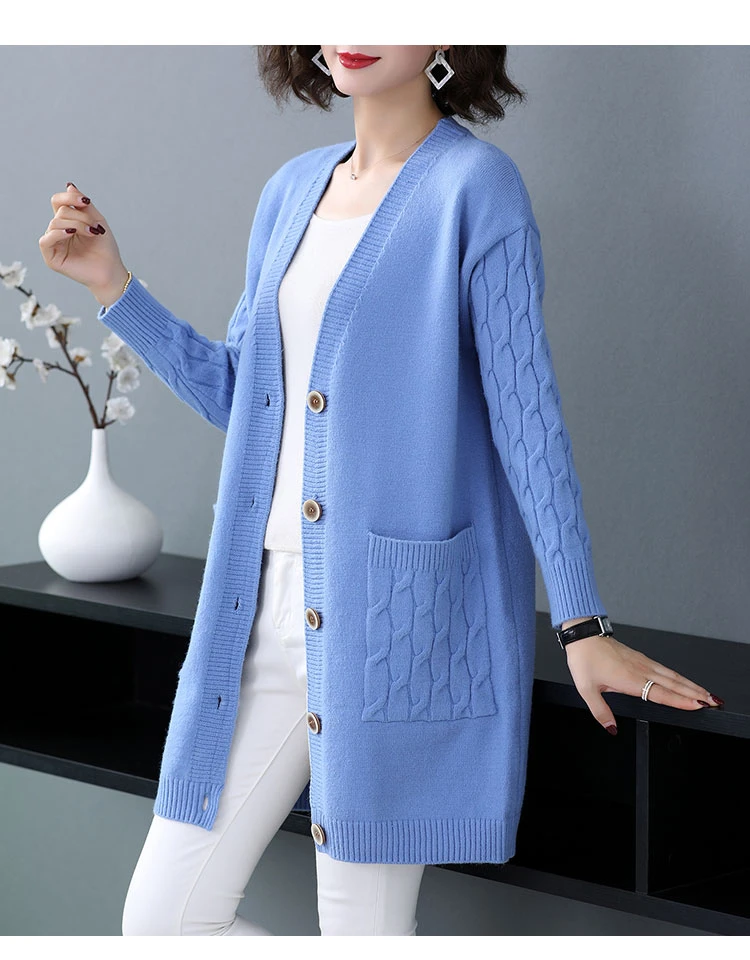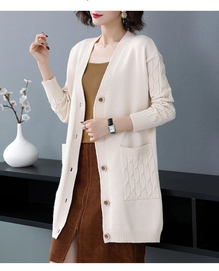 Женский винтажный свитер с V-образным вырезом однотонный Свободный вязаный