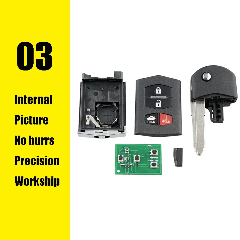 Продукт включает в себя корпус ключа, лезвие, печатную плату, чип и батарею. Это полный дистанционный ключ.
