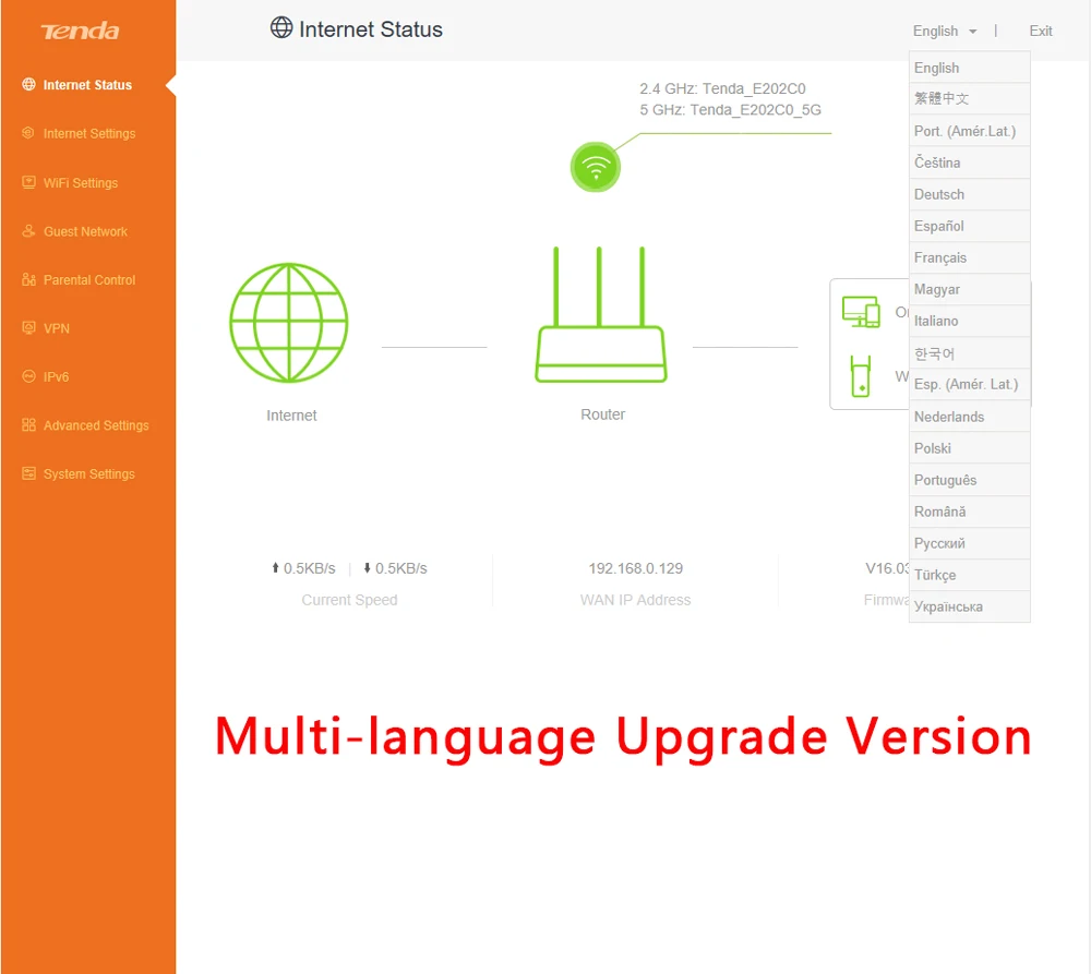 GLAC7 10/100 Мбит/с AC1200M Многоязычный интерфейс