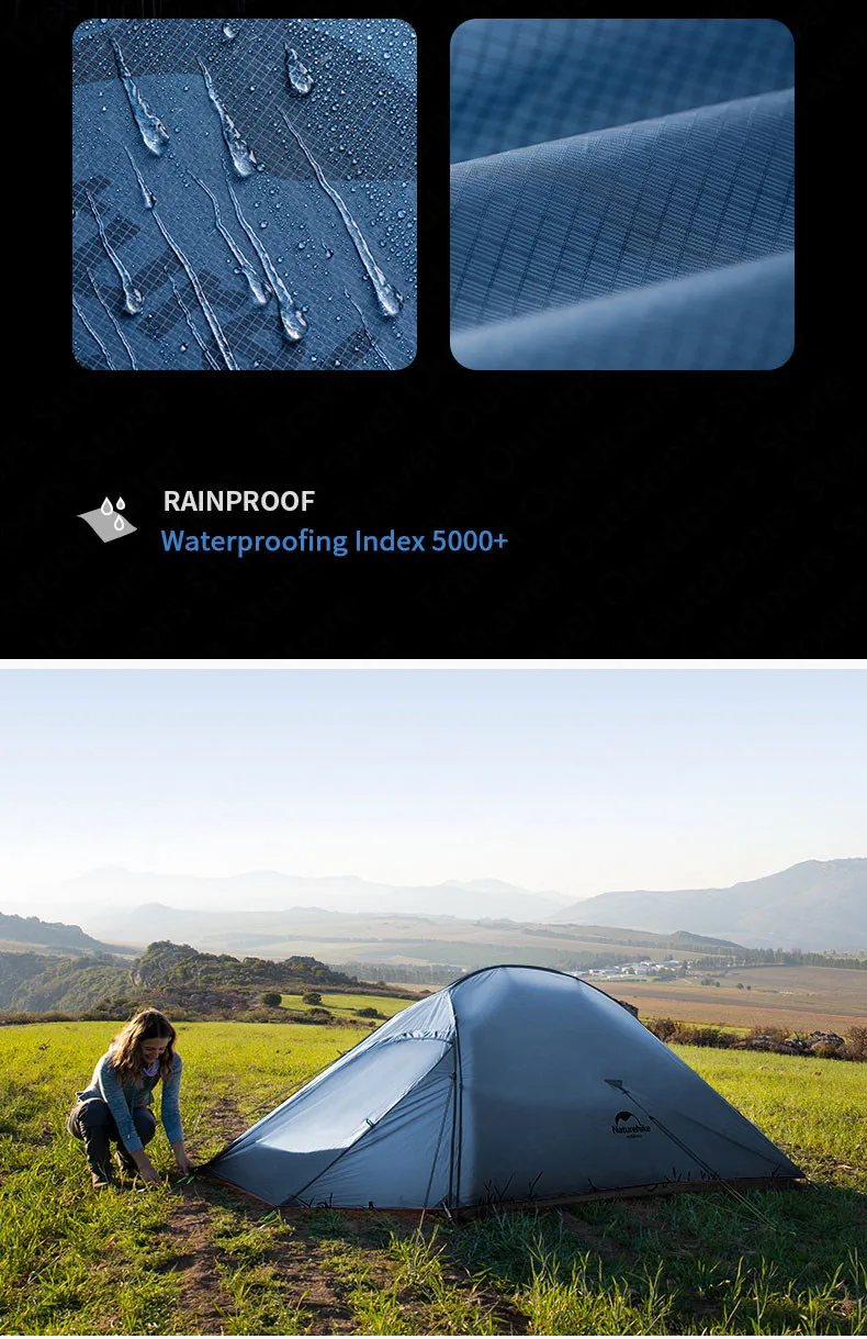 Наружная палатка: 15D 420T нейлоновая двойная ткань (водонепроницаемая 5000 мм)
