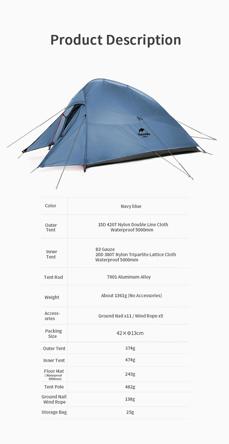 Вес аксессуаров: внешняя палатка: 374 г/Внутренняя палатка: 474 г/напольный коврик: 243 г/столб палатки: 482 г/