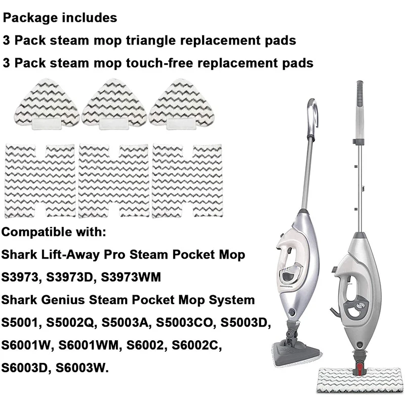 В комплект входят 3 упаковки прямоугольных и 3 упаковки треугольных подушечек из микрофибры с грязевой ручкой, подходящих для паровой швабры Shark Lift-Away Pro S3973D, S3973WM и Shark Genius S5001, S5002Q, S5003A, s5003CO, S5003D, S6001W, S6001WM, S6002, S6002C, S6003600360033, S60032, S60033, S60032, S60033, S60032, S60033, D, S6003W. Его можно использовать с акулой модели P184WQ & P182W анти-обрастания и анти-обрастания моющийся коврик из микрофибры.