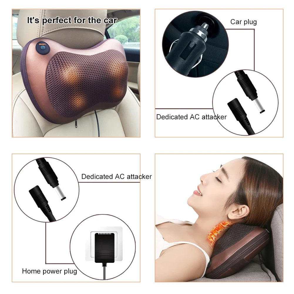 Сенсорный IC переключатель: выключатель питания, инфракрасный переключатель Снимайте напряжение и боли, заряжая вас, чтобы сделать больше Восемь массажных роликов по часовой стрелке и против часовой стрелки Вместе с функцией нагрева может дать полное расслабление с комфортом. Нейлоновый эластичный бандаж, можно зафиксировать в автомобильной подушке при массаже шеи Настройка автомобильного прикуривателя и адаптера питания, вы можете использовать в автомобиле или дома Эта массажная подушка идеально подходит для расслабления и снятия напряжения в мышцах.