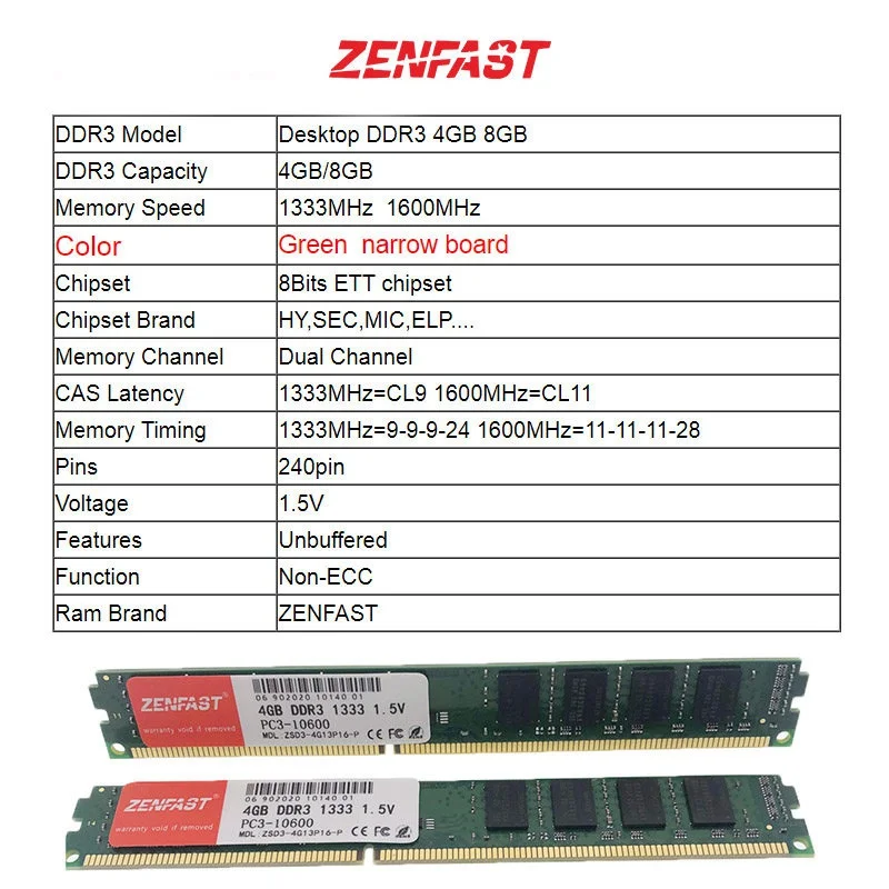 Оперативная память ddr3 4 ГБ 8 ГБ 1333 1600Каждая память ZENFAST проходит различные виды ручного тестирования, поэтому продукт может использоваться в различных прикладных средах, чтобы обеспечить пользователям высокую производительность и высокую стабильность работы компьютера.Будь то обычный пользователь, геймеры или энтузиасты компьютеров, вы можете почувствовать, что память ZENFAST улучшает производительность компьютера.1. Фабрика полностью протестирована с стабильным качеством2. В наличии для быстрой доставки убедитесь3. Rams с фирменной розничной упаковкой