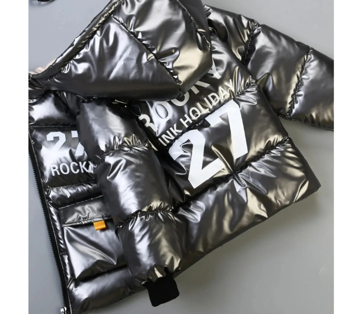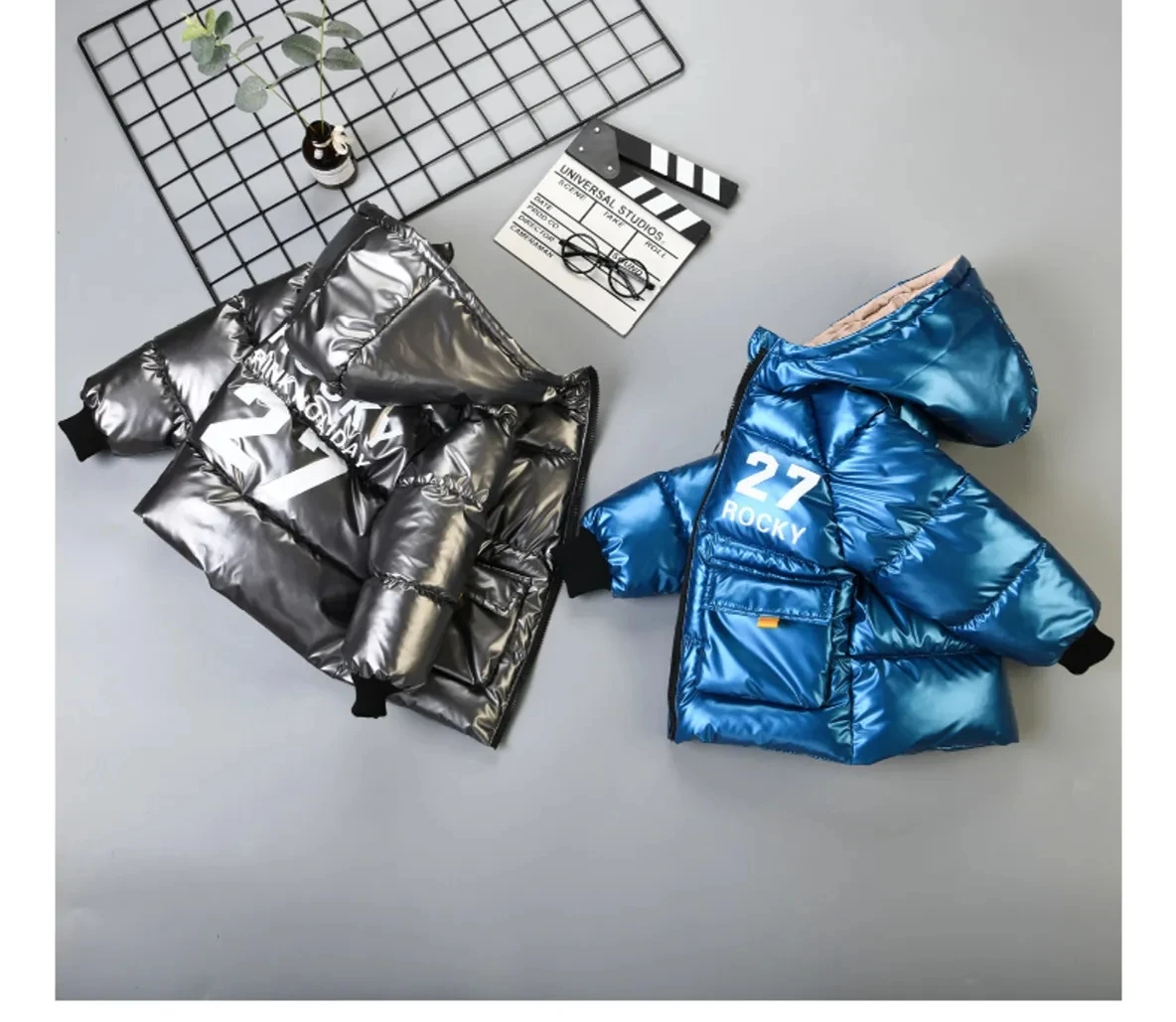 Зимняя Детская куртка с надписью однотонная простая Свободная для мальчиков