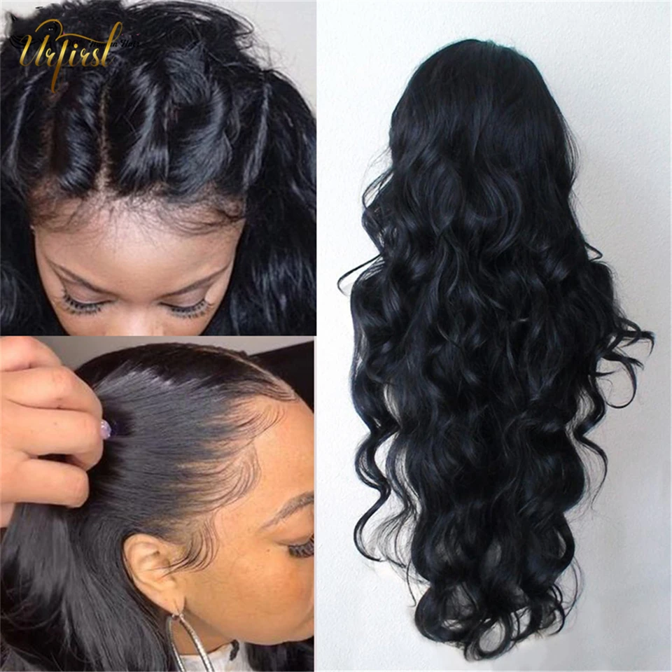 Парик с волнистыми волнами, бразильские человеческие волосы на фронте, парики для черных женщин, Remy URFIRST, человеческие волосы, парик с предварительно выщипанными кружевными фронтами
