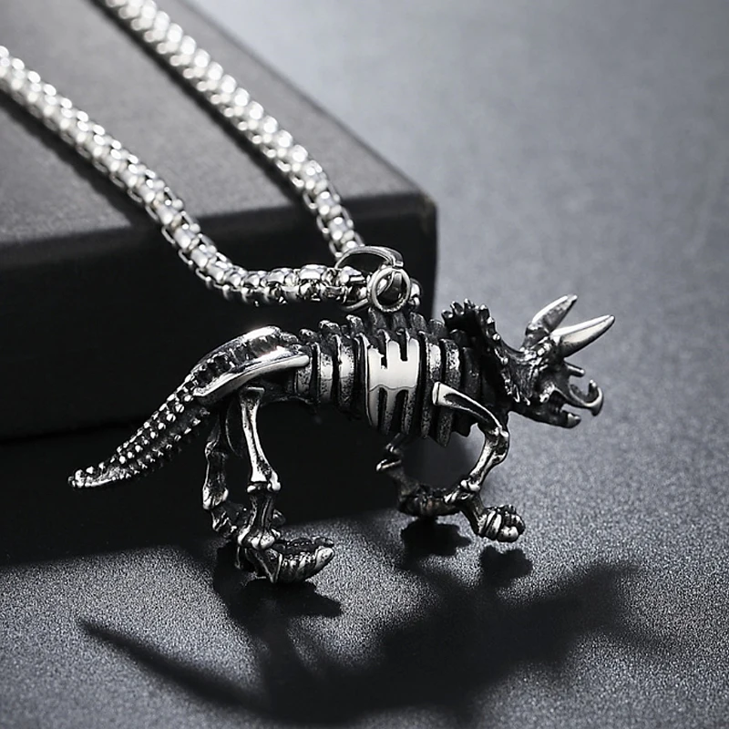 Название: винтажное ожерелье с подвесками в форме динозавров из нержавеющей стали, мужское ожерелье в виде скелета животного, индивидуальное хип-хоп, панк украшения
