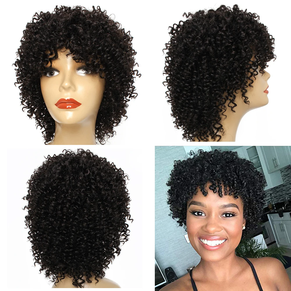 100% парики из человеческих волос с челкой, короткие волосы. Парик, легко носить и снимать