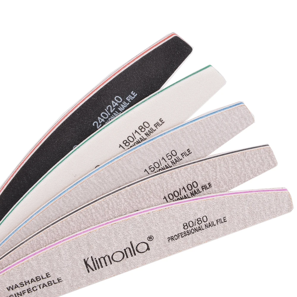 3 шт., пилка для ногтей Klimonla, двухсторонняя полировка, буферные инструменты для маникюра 80/100/150/180/240, зернистость, полумесяц, аксессуары для ногтей, инструмент
