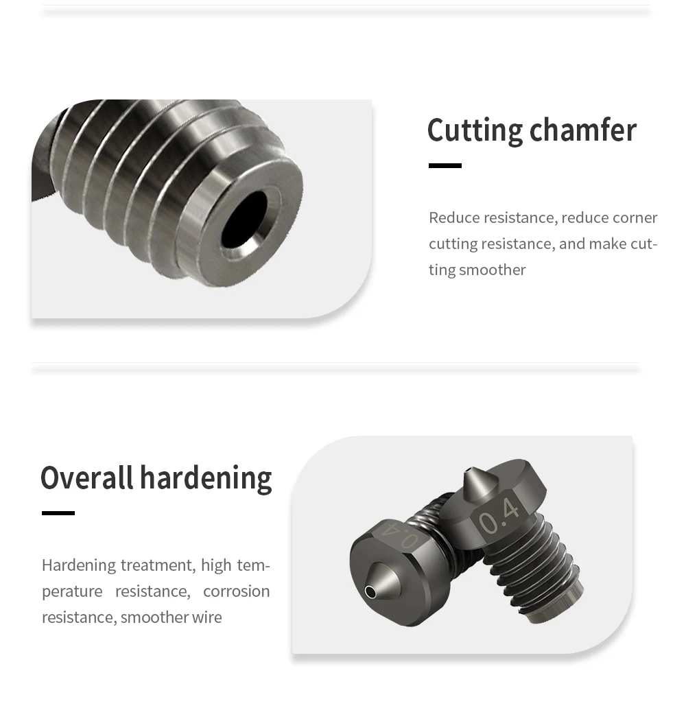 Он изготовлен из высококачественного термоформования, высокотемпературного карбюрирования и закалки, обладает супер износостойкостью, термостойкостью, высокой твердостью и высокой прочностью, долгим сроком службы, совместимость с большинством высокотемпературных волокон печати на рынке.
