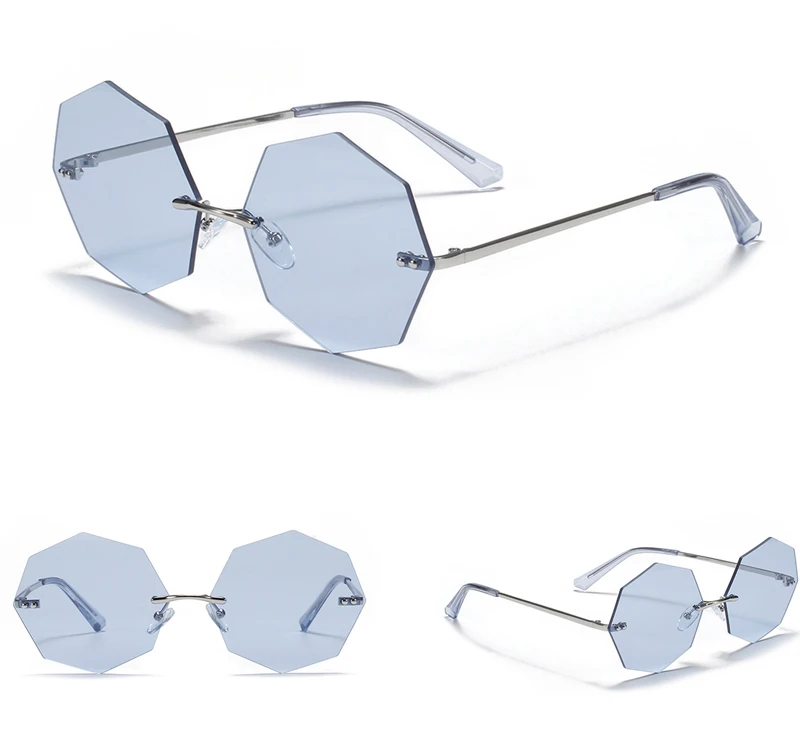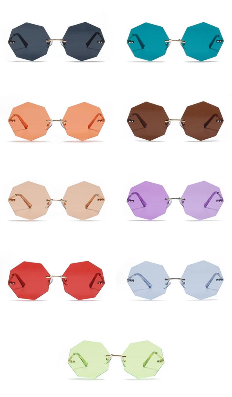 Женские и мужские солнцезащитные очки Peekaboo, восьмиугольные солнцезащитные очки без оправы в металлическом ретро-стиле, полигональные очки, зеленые, черные, uv400, подарок на вечеринку.