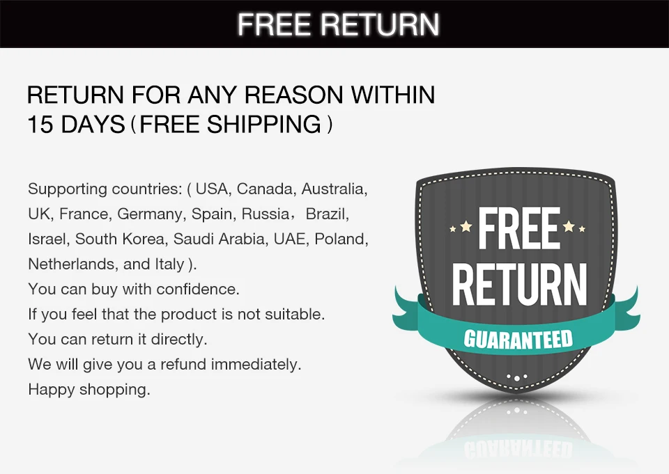 Возврат по любой причине в течение 15 дней (Бесплатная доставка)