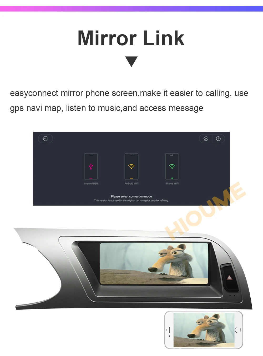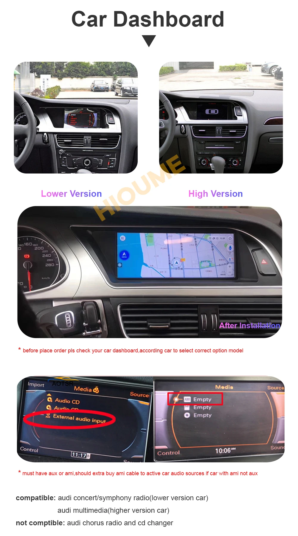 Audi A5 2009-2016 левый приводАвтомобиль должен иметь функцию AUX или AMIПримечание* Если ваш автомобиль с оригинальной функцией gps, пожалуйста, выберите вариант с оригинальным GPS