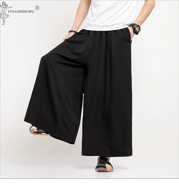 Японские мужские уличные модные повседневные Прямые брюки с юбкой, мужские Модные свободные шаровары в стиле хип-хоп, кимоно, хлопковые брюки, азиатская одежда