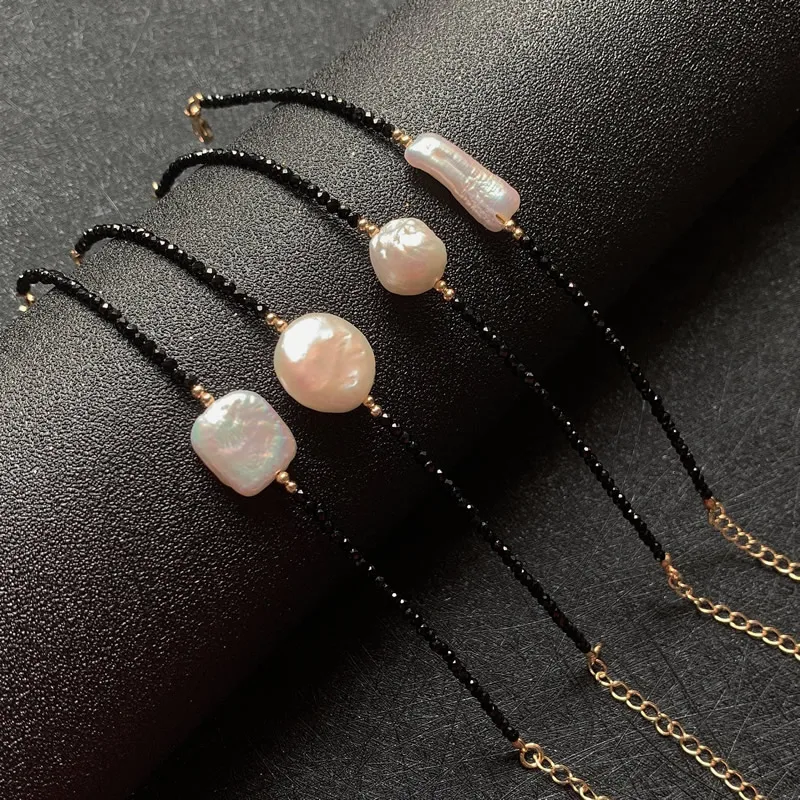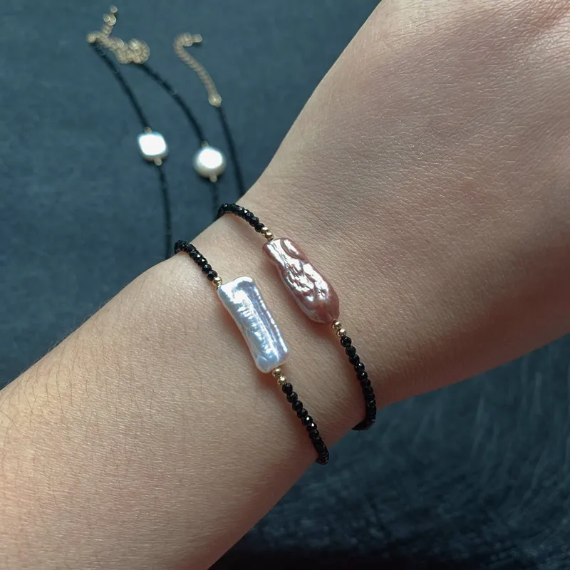 2 мм маленький камень сияющий кристалл черный обсидиан браслет Настоящее барокко Жемчуг очарование натуральный пресноводный жемчуг браслет женский Femme