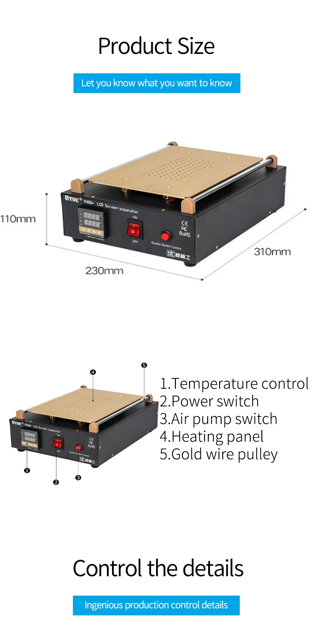 11 дюймов 11 ''ЖК-сепаратор машина сенсорный экран Восстановленный ремонт UYUE 948Q + сплит-экран машина телефон нагревательная платформа