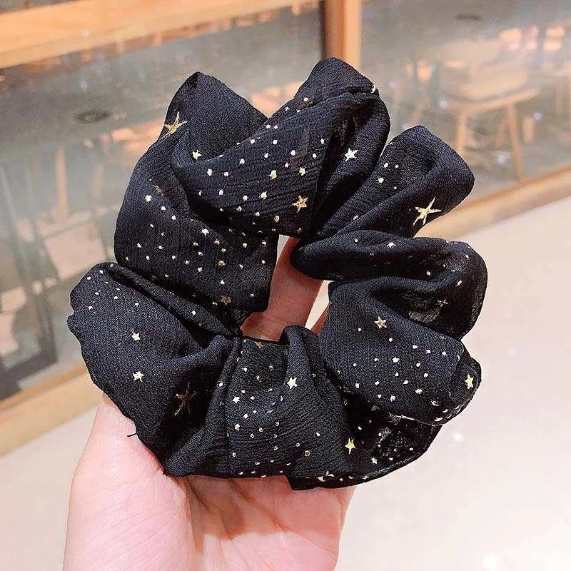 2020 милые золотые эластичные резинки с пентаграммой, корейский галстук для волос для женщин и девочек, блестящая Звезда, держатель для конского хвоста, аксессуары для волос